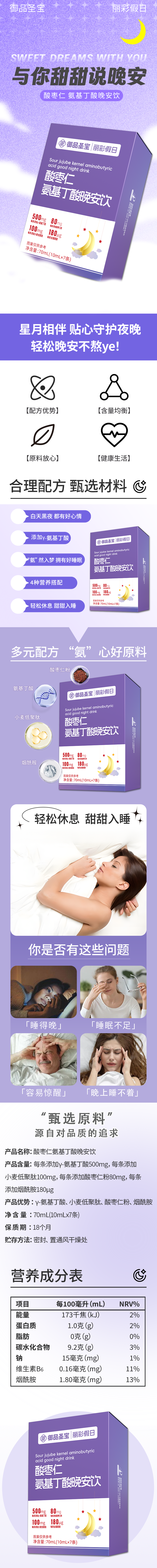 商品名称:酸枣仁氨基丁酸晚安饮睡眠不好睡不着睡得香