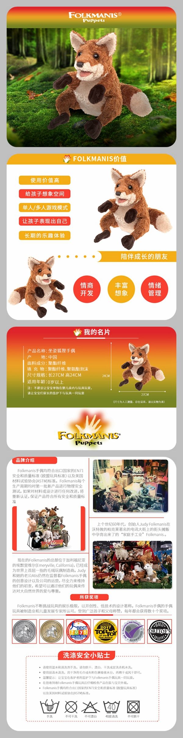 商品名称:福克曼尼斯/FOLKMANIS 仿真互动教育手偶坐姿狐狸手偶