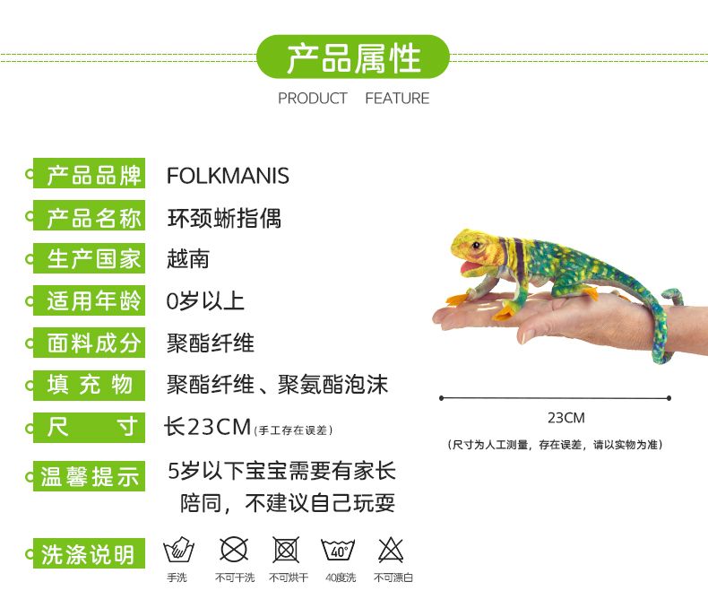 商品名称:福克曼尼斯/FOLKMANIS 仿真互动教育手偶小环颈蜥指偶