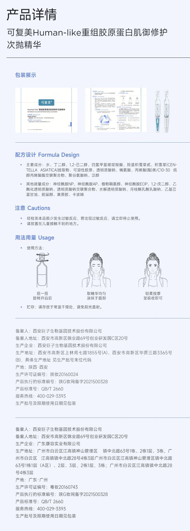 商品名称:可复美 胶原桶 重组胶原蛋白肌御修护次抛精华 100支/桶