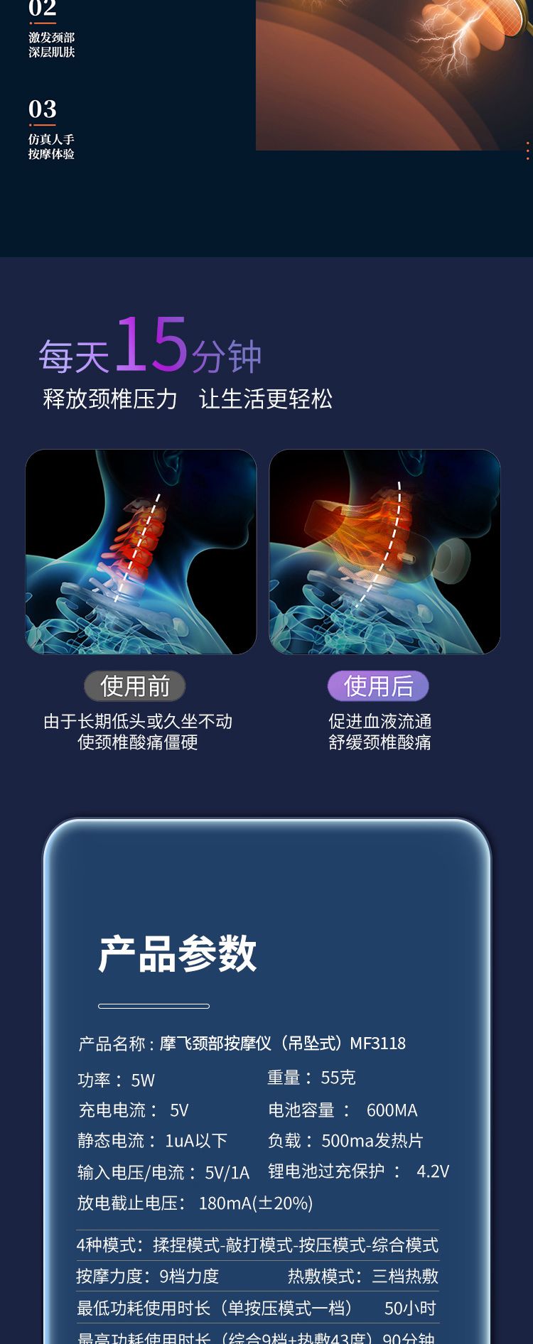 商品名称:摩飞吊坠式颈部按摩仪MF3118玫瑰金