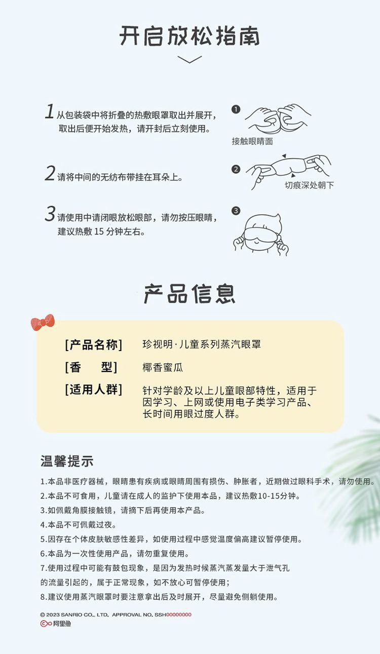 商品名称:珍视明 HelloKitty椰香蜜瓜蒸儿童款汽眼罩 7袋/盒