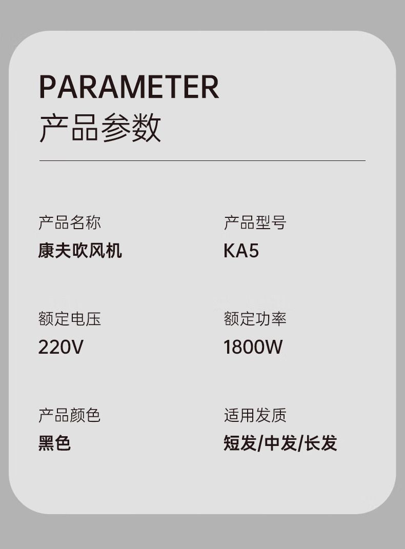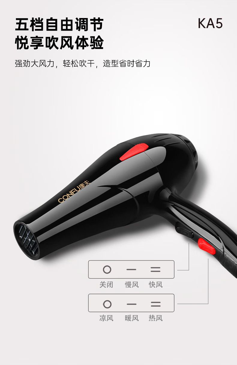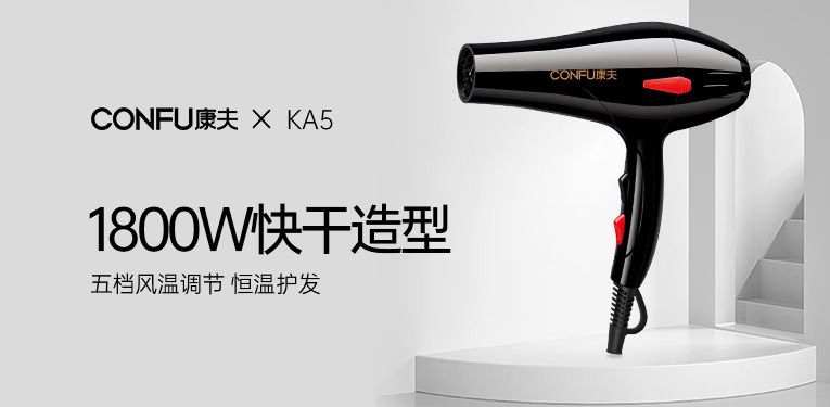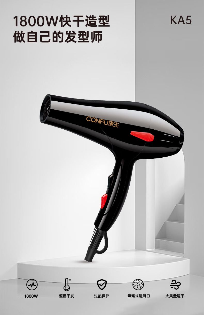 商品名称:康夫(CONFU)电吹风机家用护发冷热风吹风筒 1800W大风力速干KA5