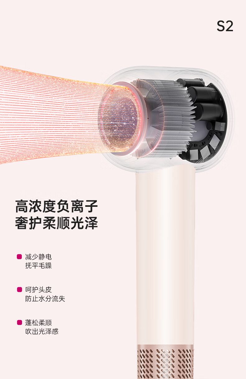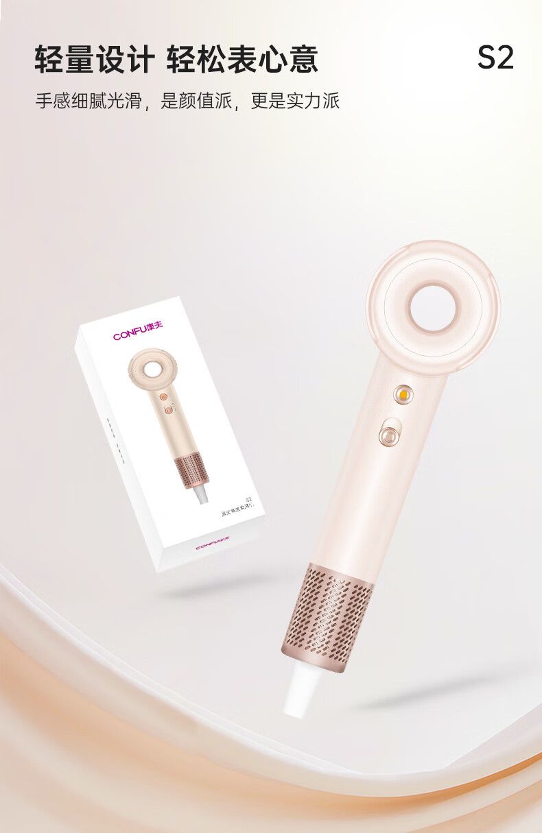 商品名称:康夫S2高速电吹风机中空无叶情人节礼物生日家用大功率大风力送女友等离子护发静音吹风筒 1500W