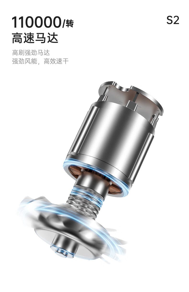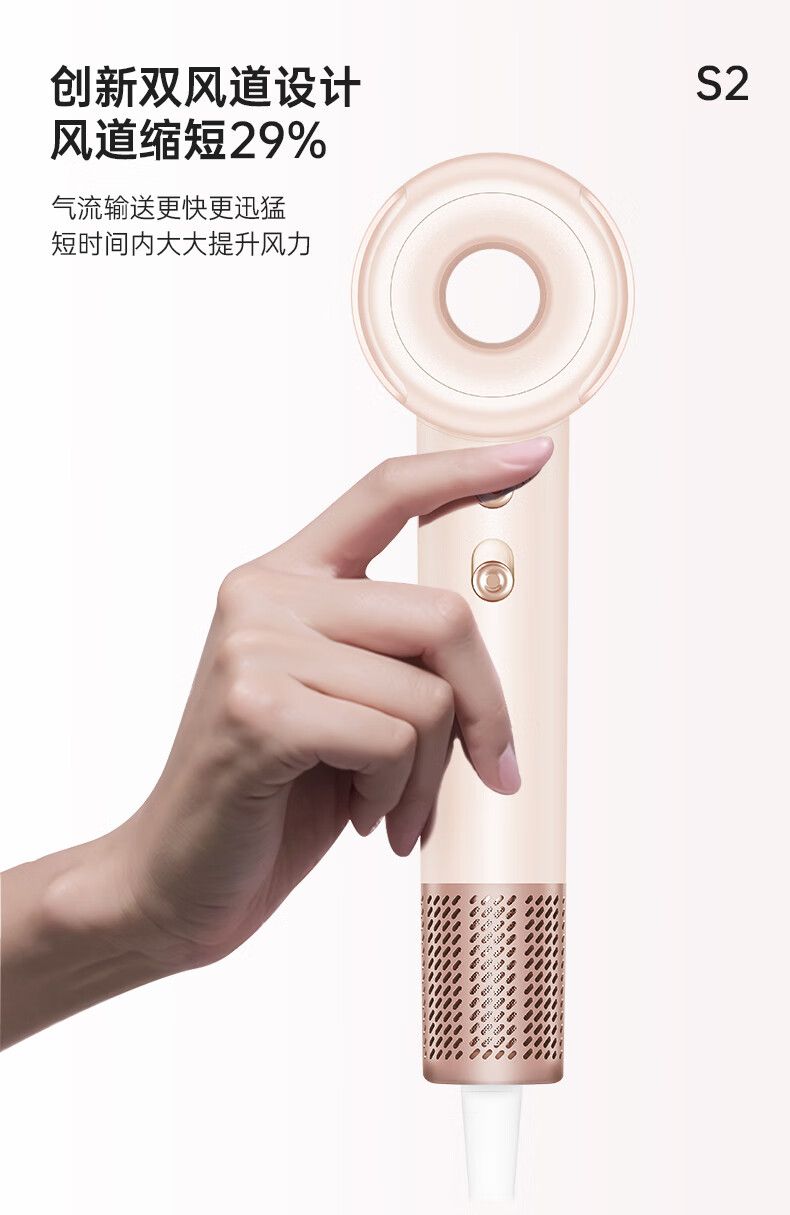 康夫S2高速电吹风机中空无叶情人节礼物生日家用大功率大风力送女友等离子护发静音吹风筒 1500W