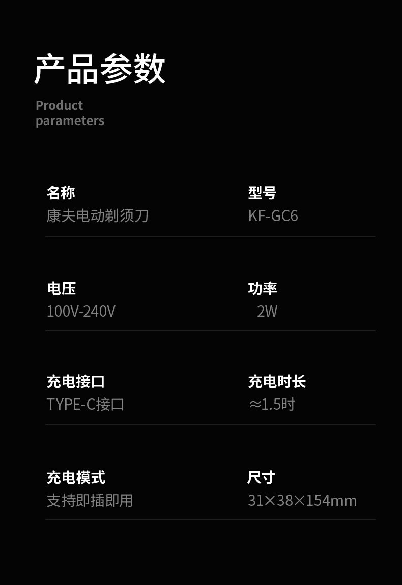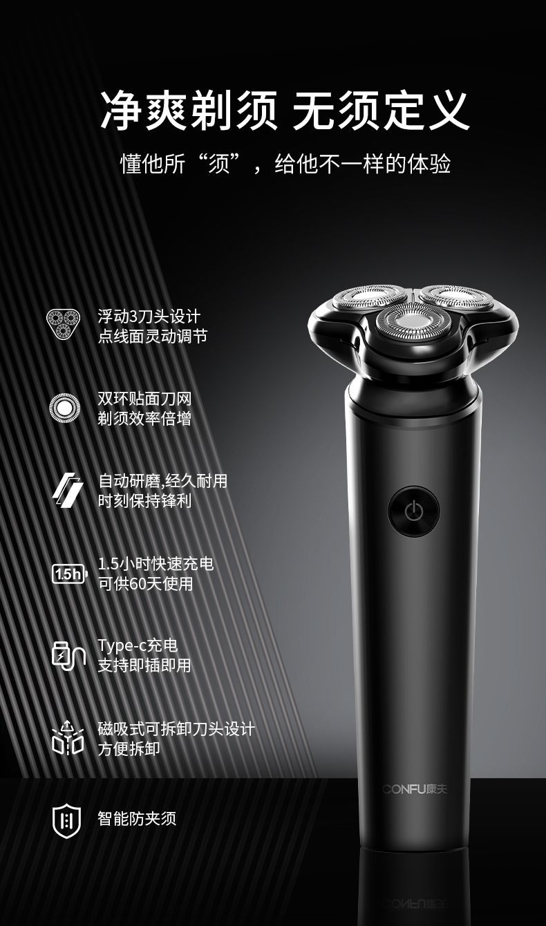 商品名称:康夫(CONFU)剃须刀电动刮胡刀男士父亲生日礼物智能快充水洗干湿两用便携款迷你三刀头胡须刀KF-GC6