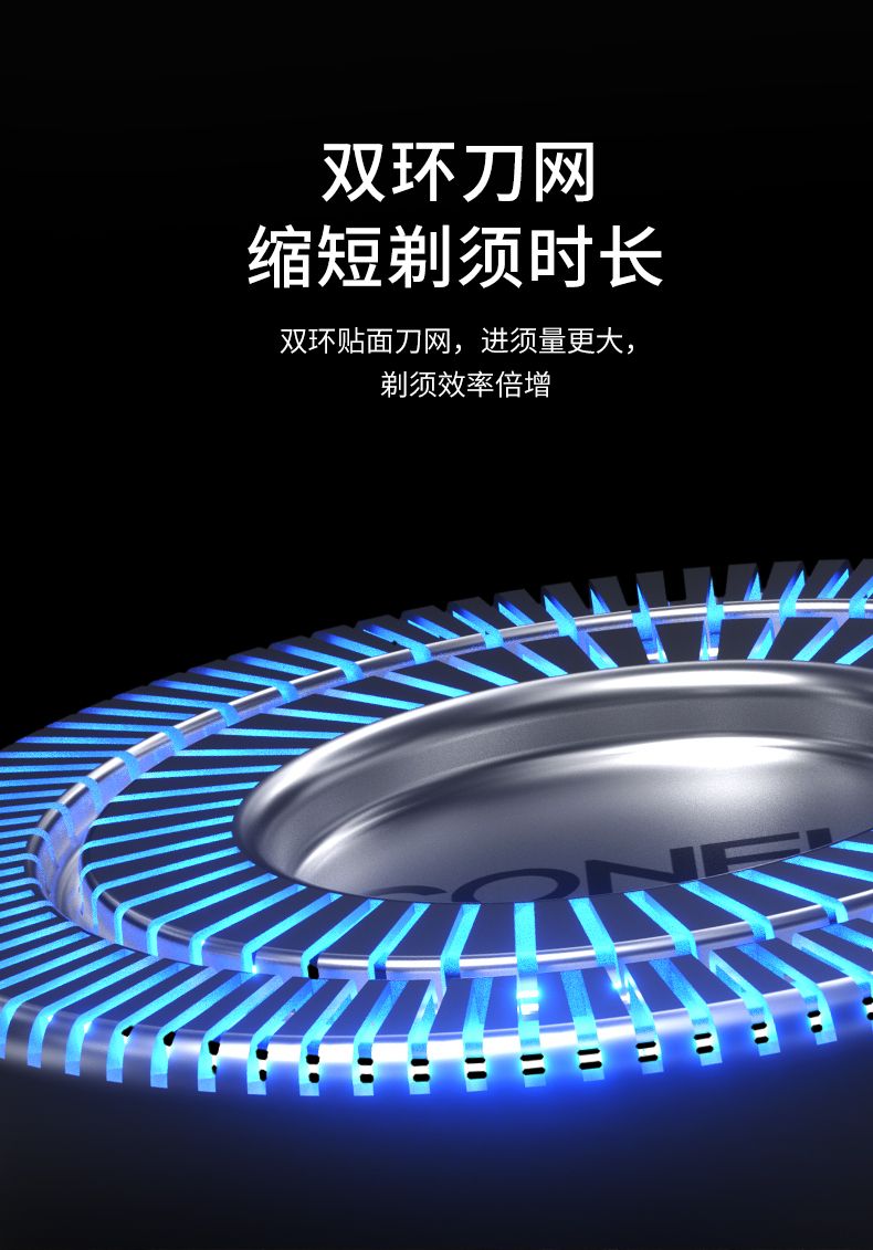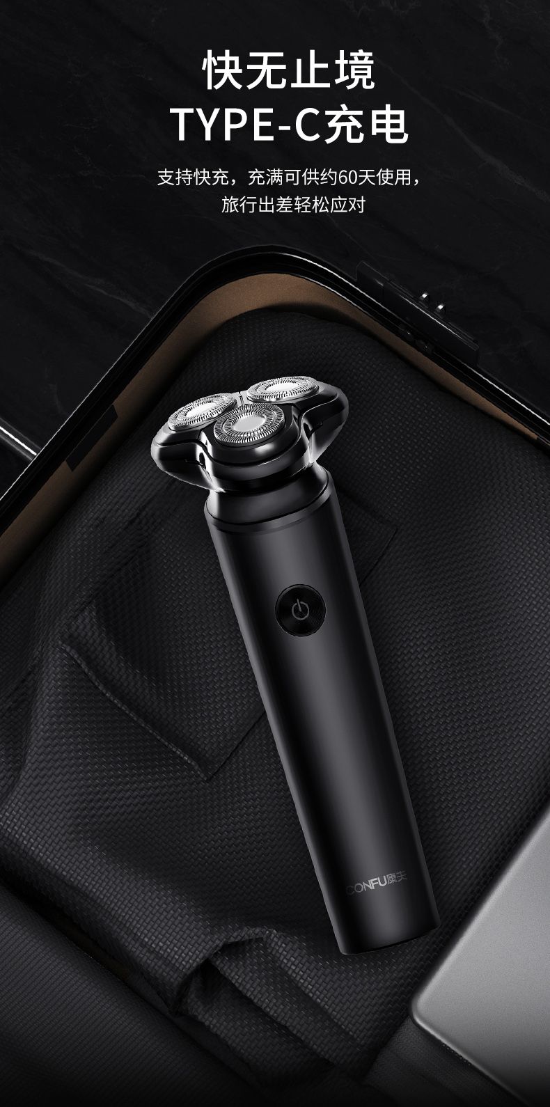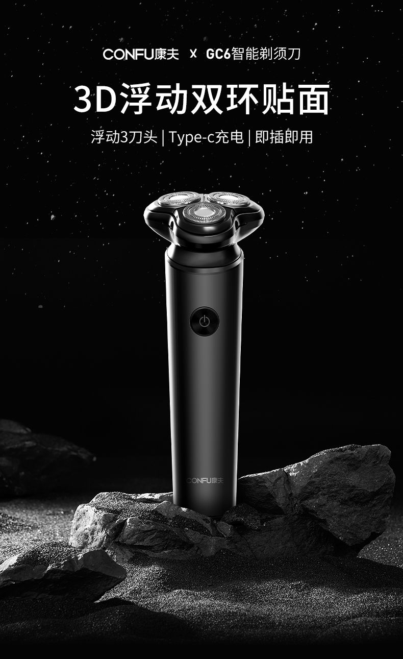 康夫(CONFU)剃须刀电动刮胡刀男士父亲生日礼物智能快充水洗干湿两用便携款迷你三刀头胡须刀KF-GC6