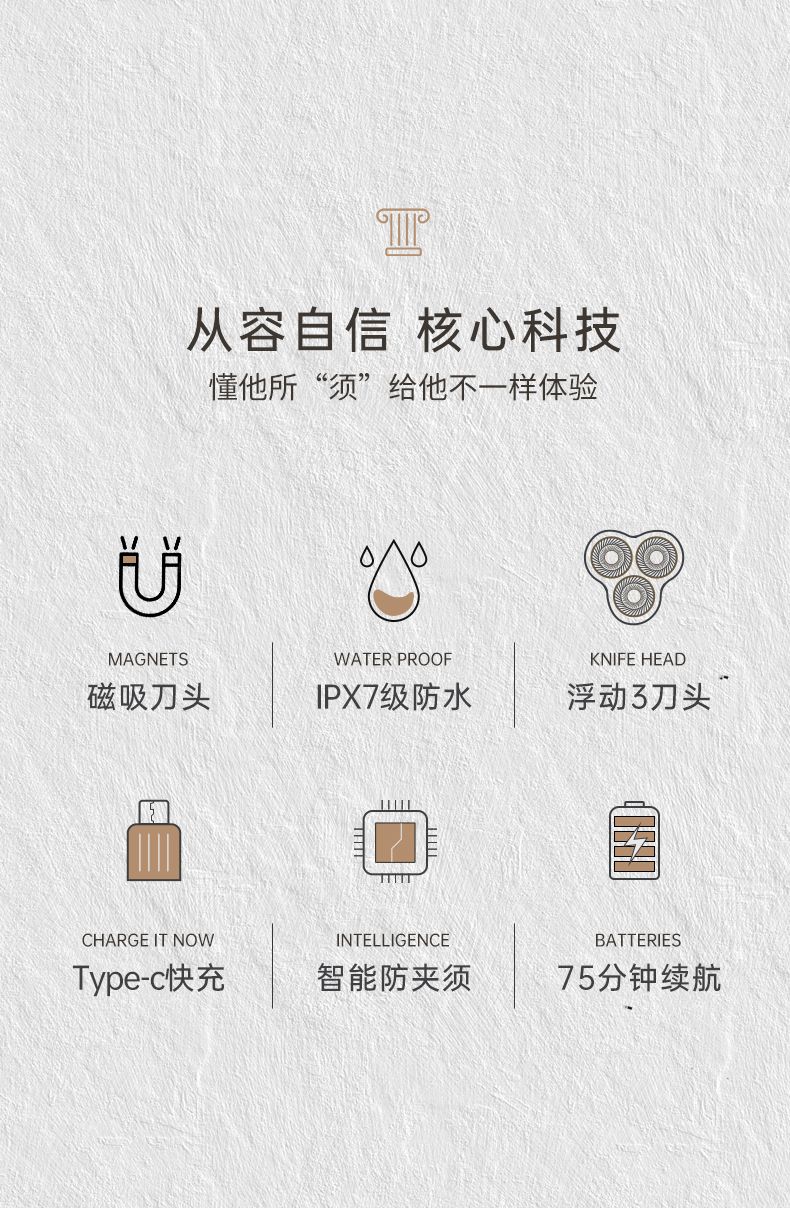 康夫剃须刀电动男士礼物智能快充全身水洗干湿两用便携式须刨三刀头刮胡须刀KF-G1