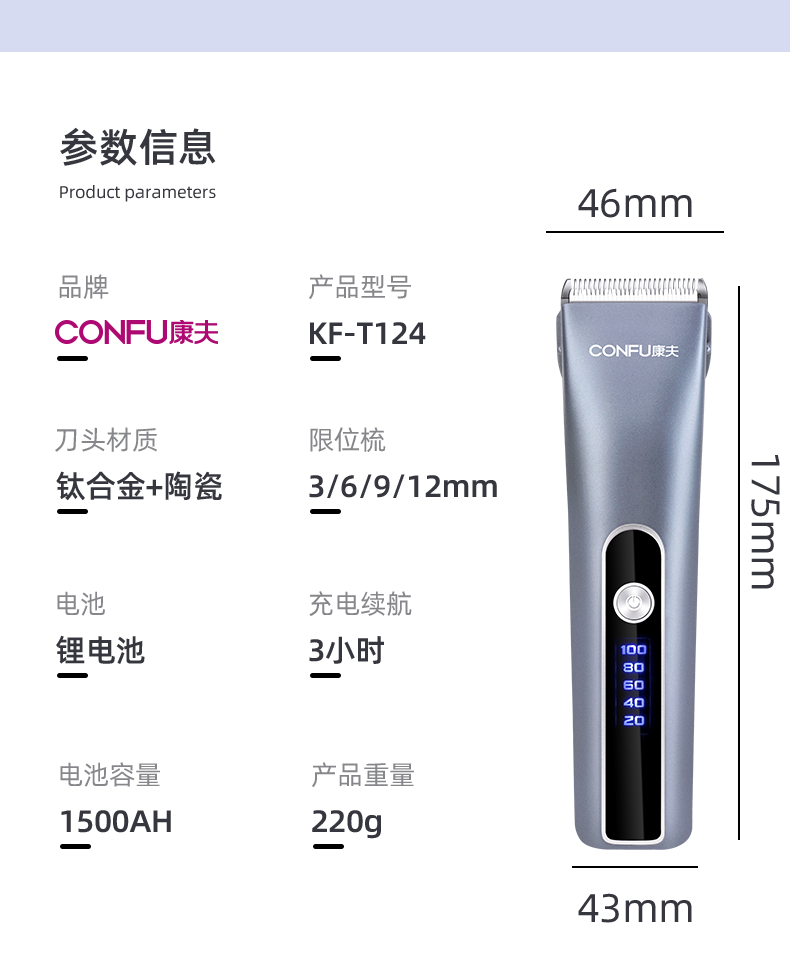 商品名称:康夫电推剪家用推剪油头剪大人专业电推T124
