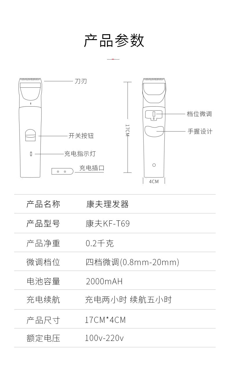 商品名称:CONFU康夫电推剪锂电充电电推剪,充插两用,2小时快充,可连续使用5小时