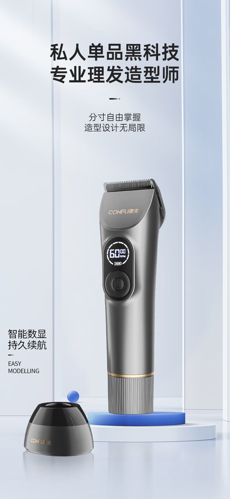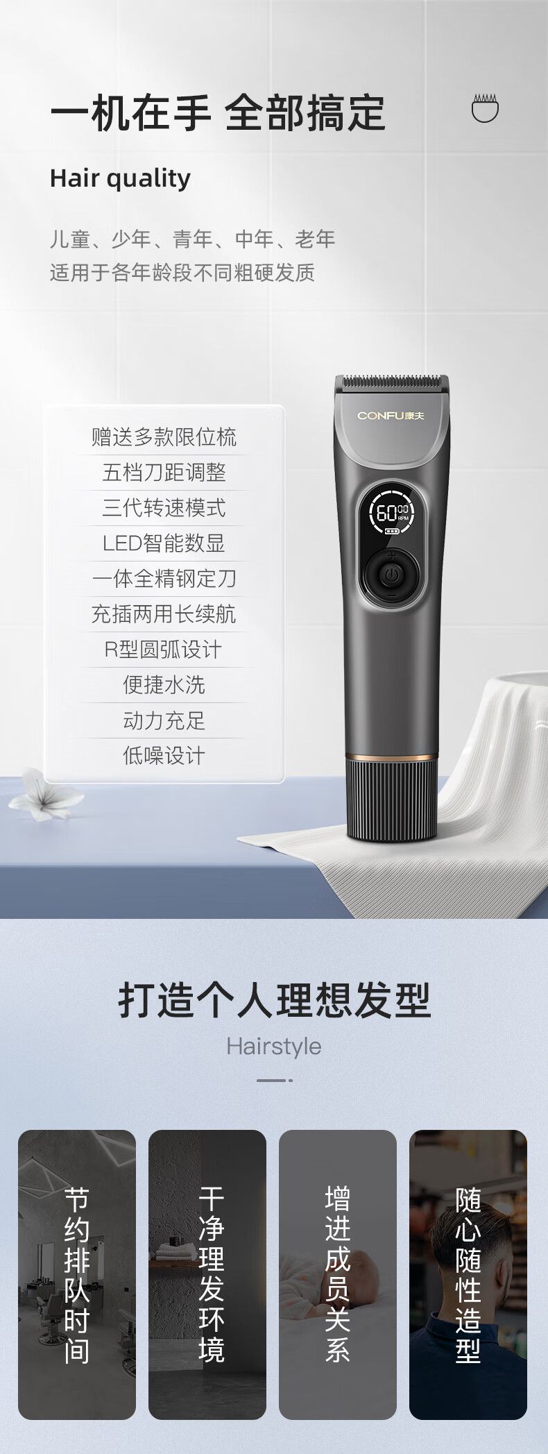 康夫电推子理发器理发店专用电推剪家用剃头理发神器自理发器智能数显理发工具全套
