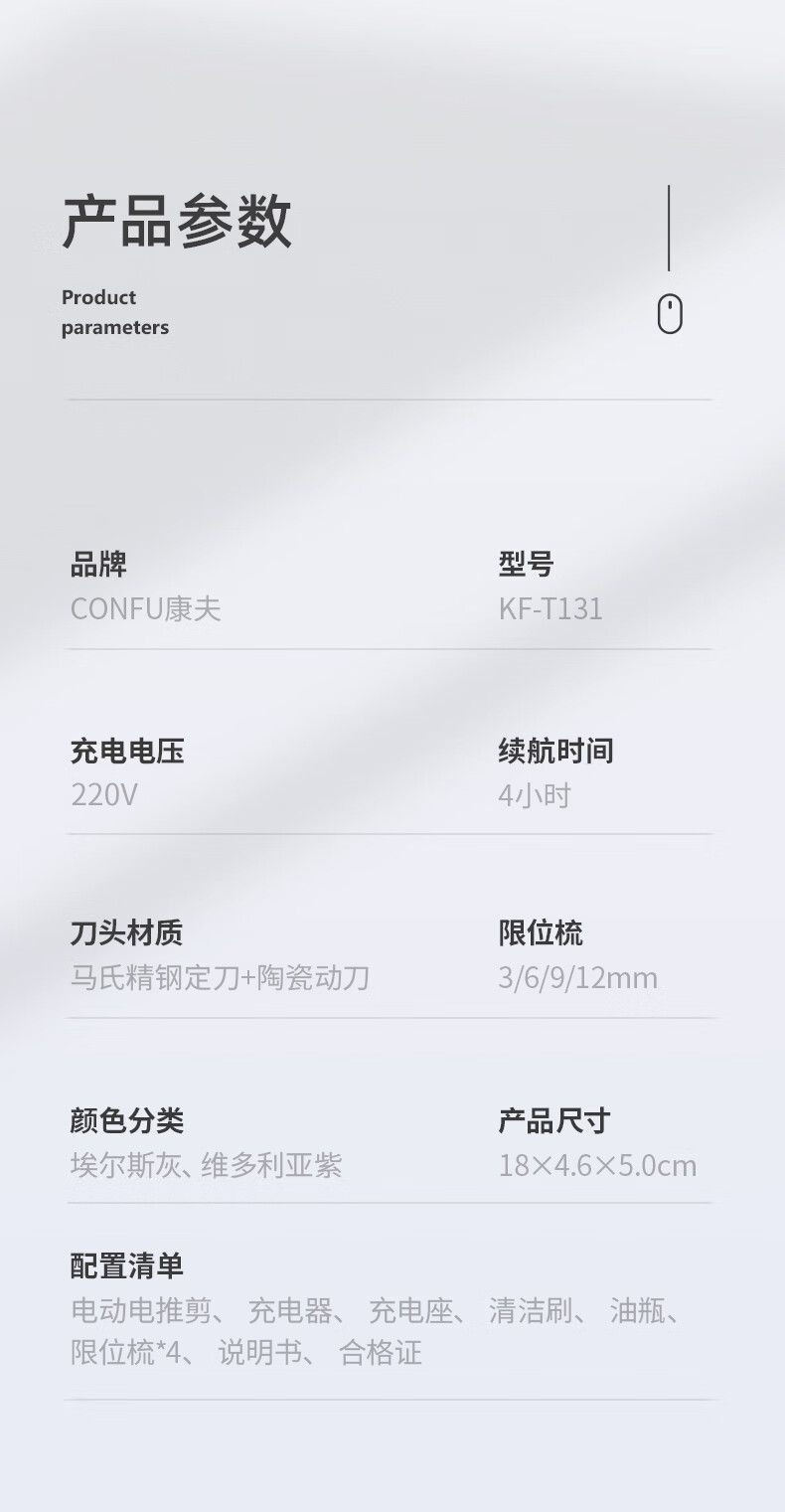 商品名称:康夫电推子理发器理发店专用电推剪家用剃头理发神器自理发器智能数显理发工具全套