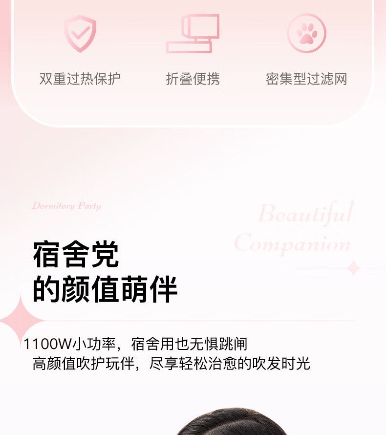 商品名称:康夫学生宿舍家用小功率电吹风机小型迷你折叠便携