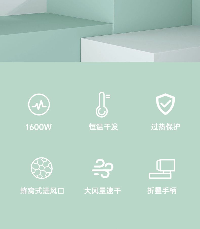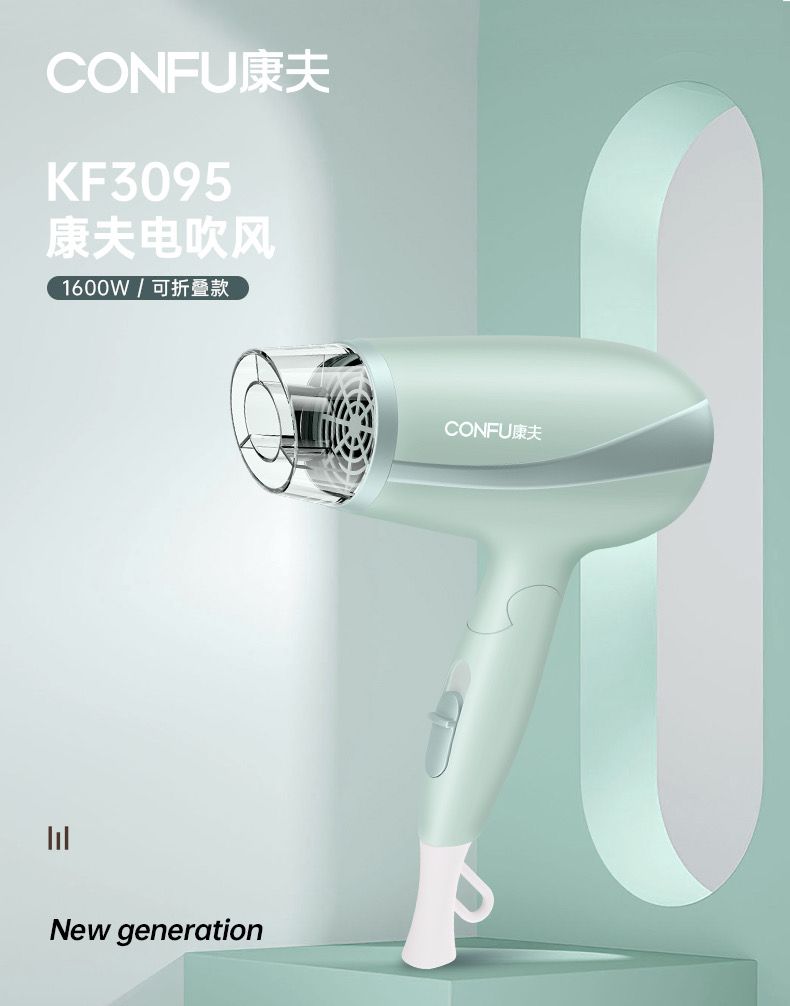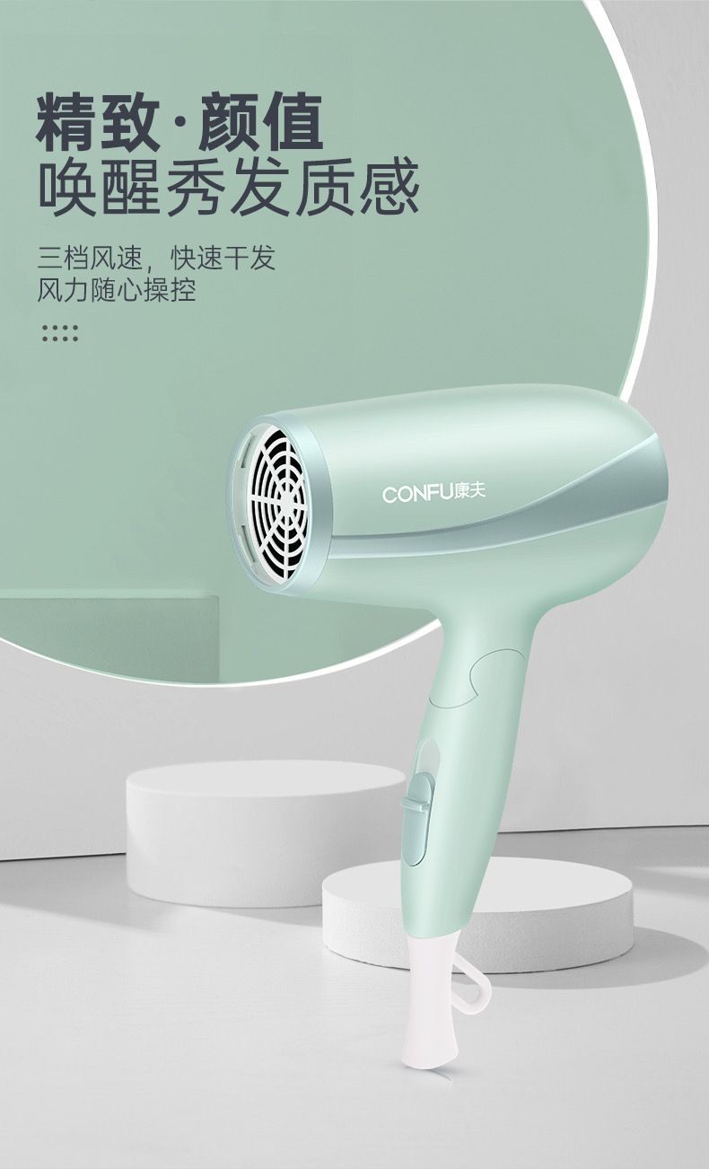 商品名称:康夫电吹风机家用折叠1600W功率学生宿舍便携式负离子护发