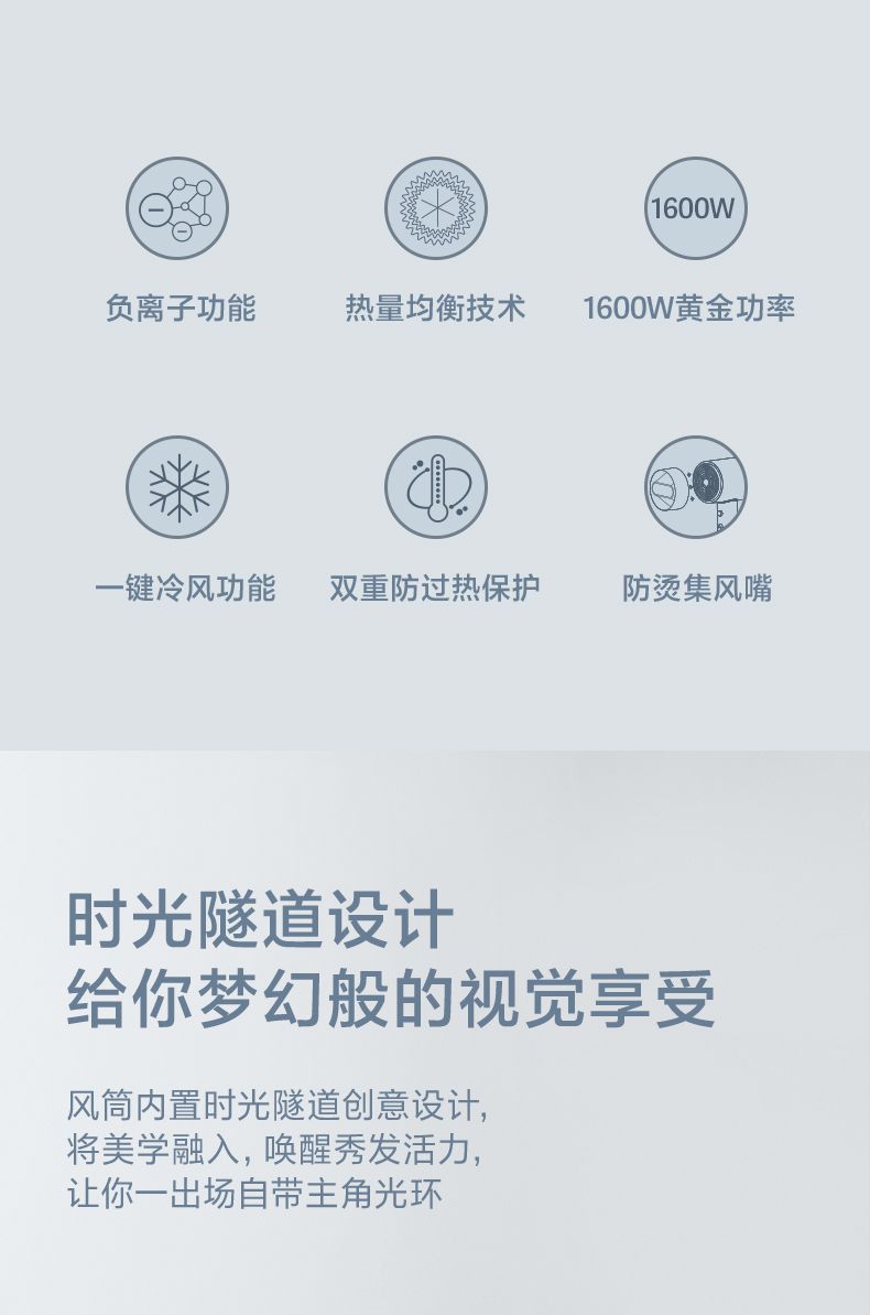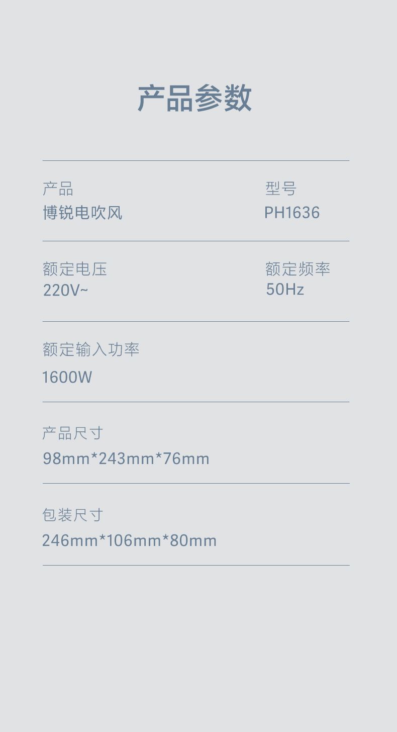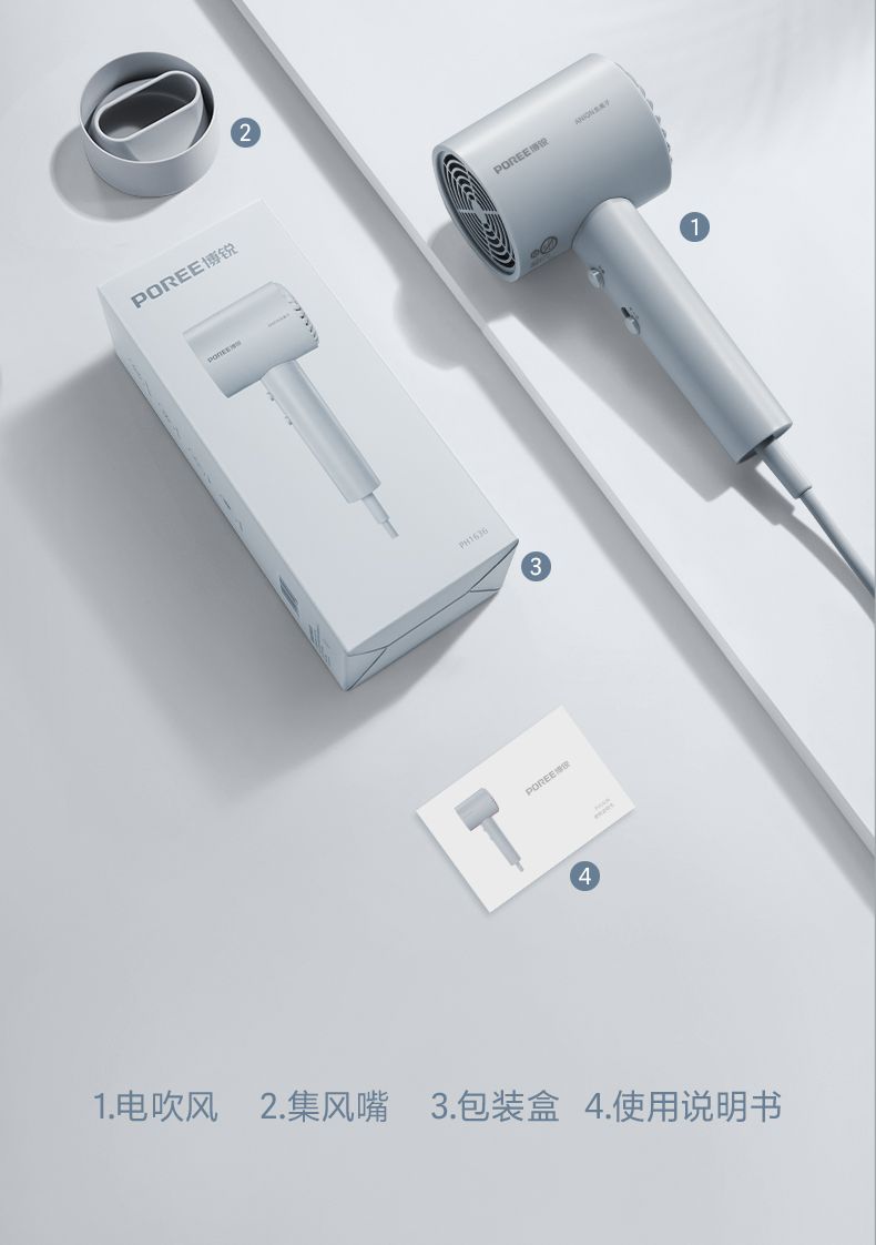 商品名称:博锐电吹风机家用负离子 宿舍用便携速干护发大风力吹风筒 柔风恒温护发PH1636