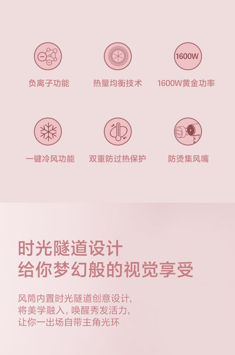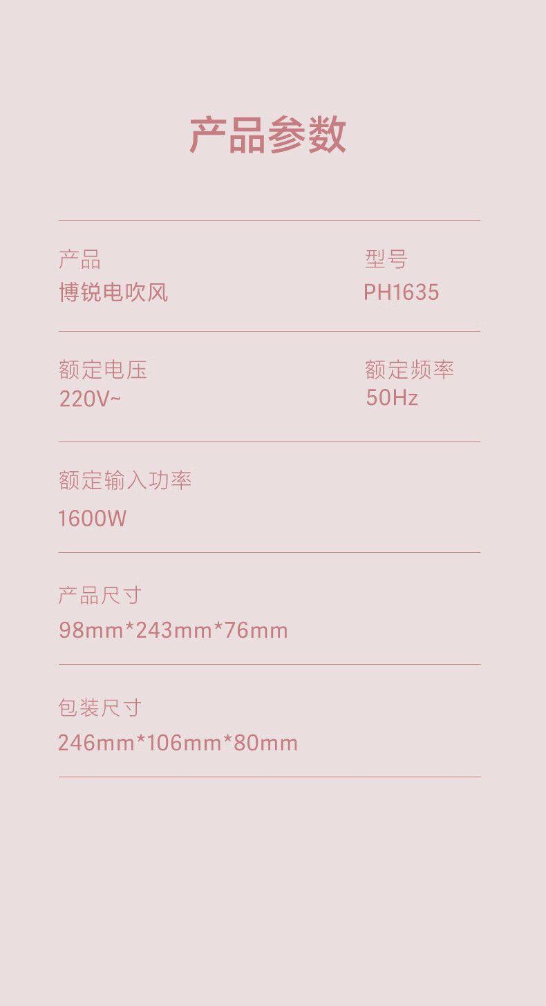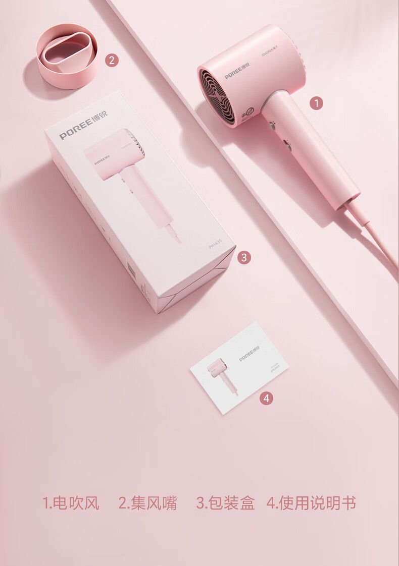 商品名称:博锐电吹风机负离子家用宿舍用便携速干大风量低噪音吹风筒节日礼物送女友PH1635