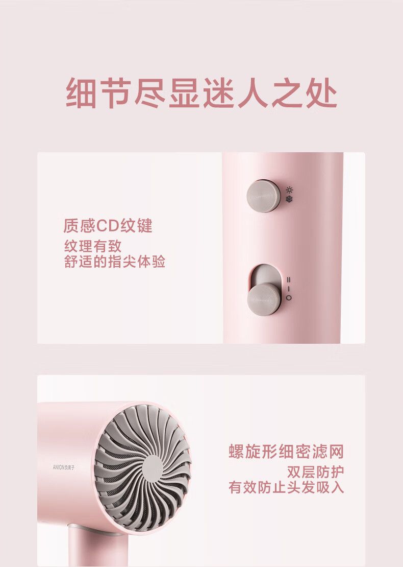 博锐电吹风机负离子家用宿舍用便携速干大风量低噪音吹风筒节日礼物送女友PH1635