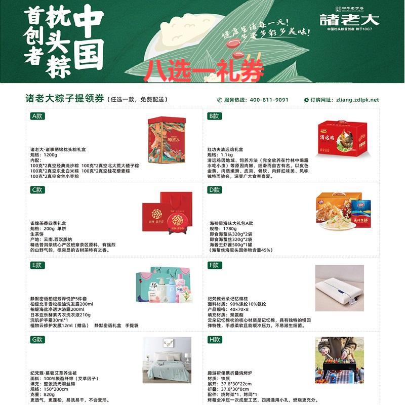 八选一礼券〗诸老大诸事绣锦枕头粽礼盒1200g提货券(89型)