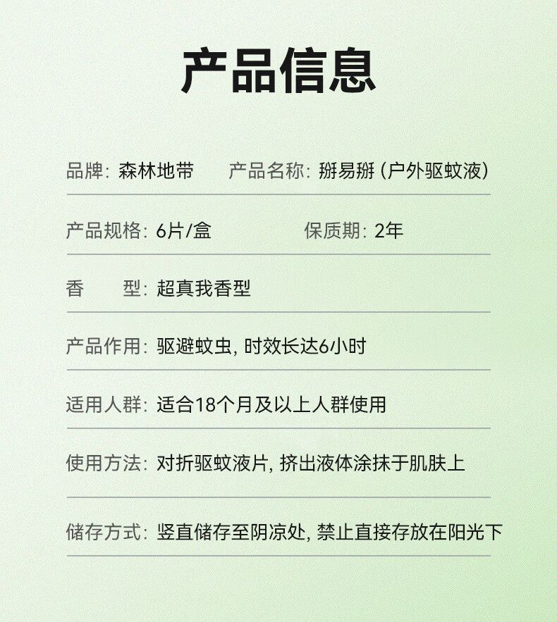 商品名称:森林地带 掰易掰驱蚊液 2.5g*6(10%驱蚊酯无香)