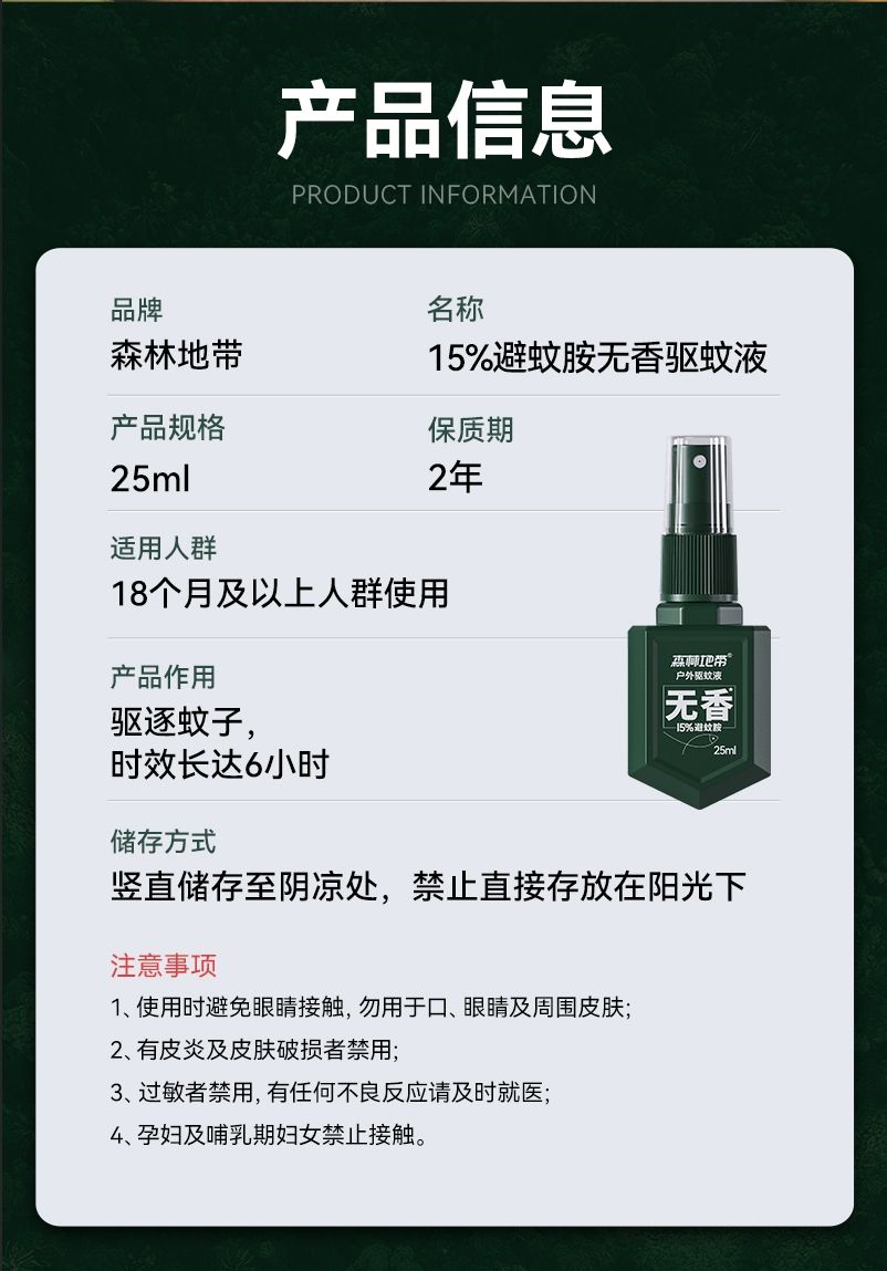 商品名称:森林地带 驱蚊液25ML(爆护便携款)