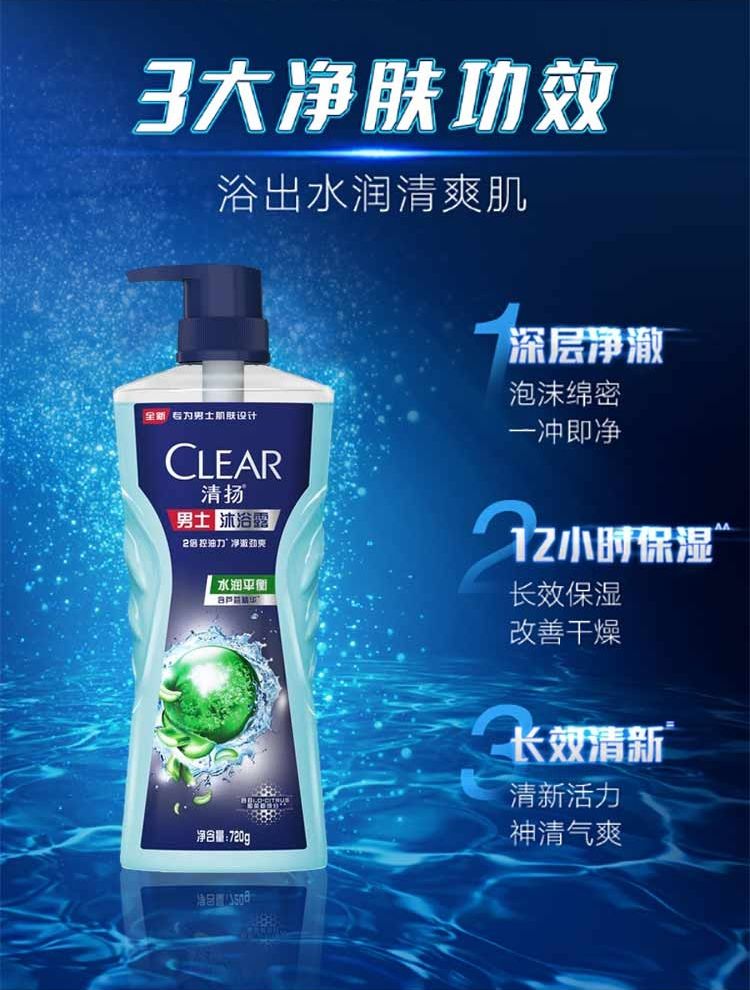商品名称:清扬 男士系列水润平衡沐浴露 720G