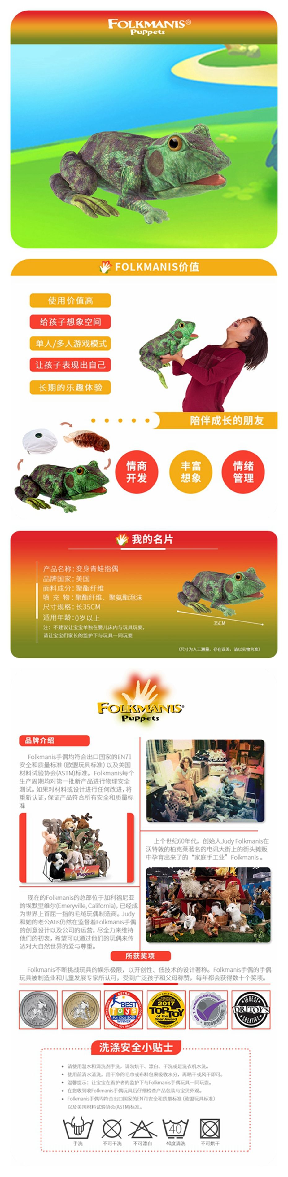 商品名称:福克曼尼斯/FOLKMANIS 仿真互动教育手偶变身青蛙手偶