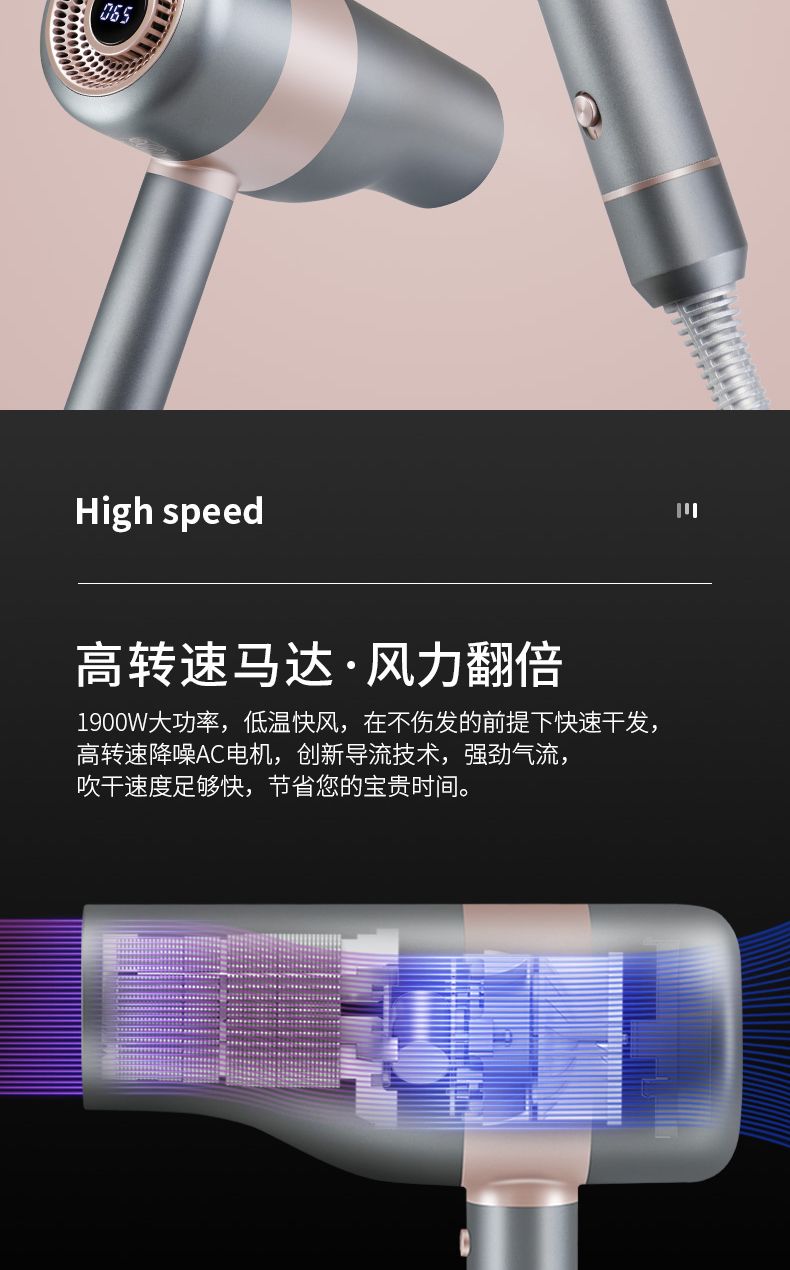 康夫家用大功率电吹风机负离子恒温速干护发温控显示吹风筒