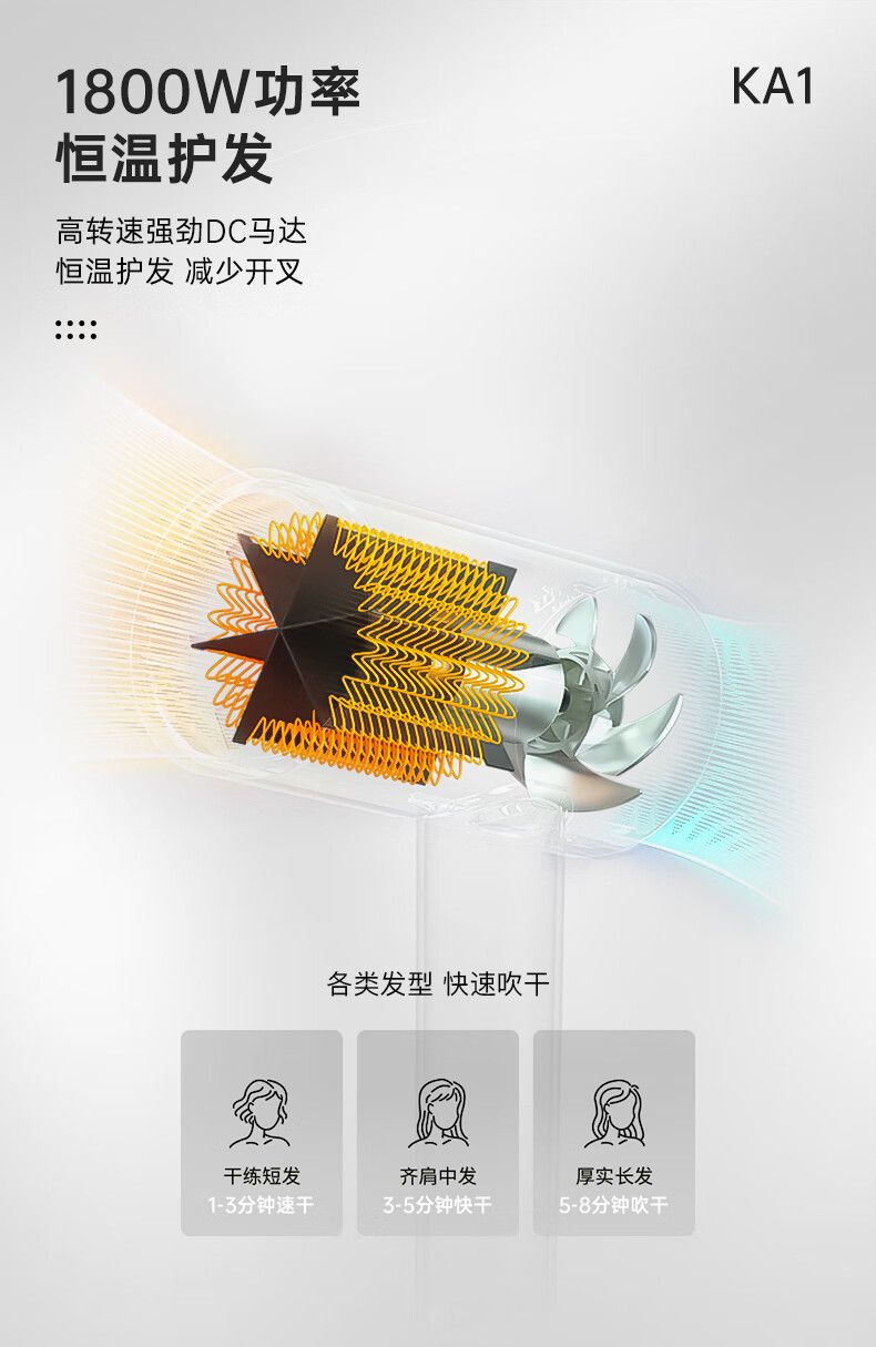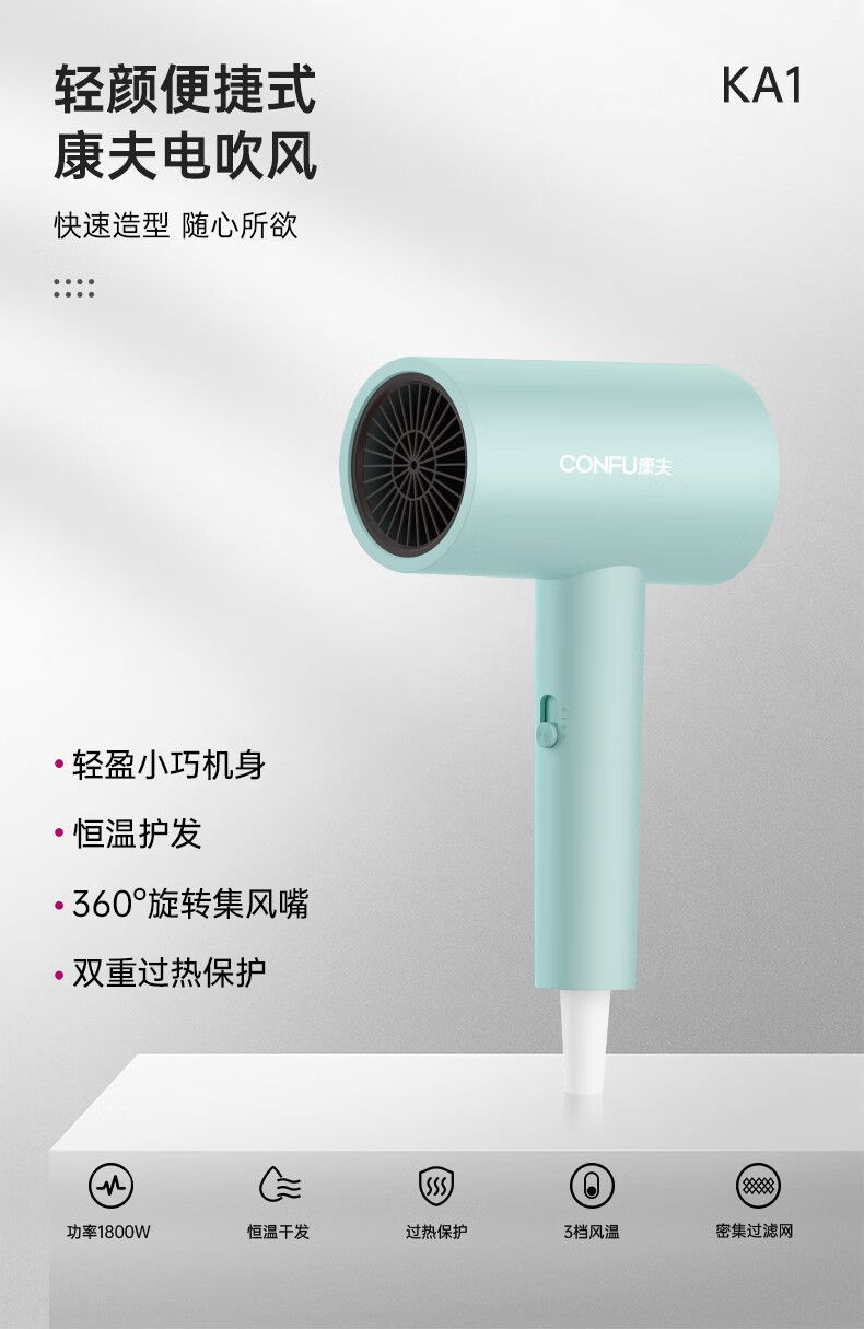 康夫(CONFU)电吹风机家用1800W便携造型吹风机节日礼物KA1