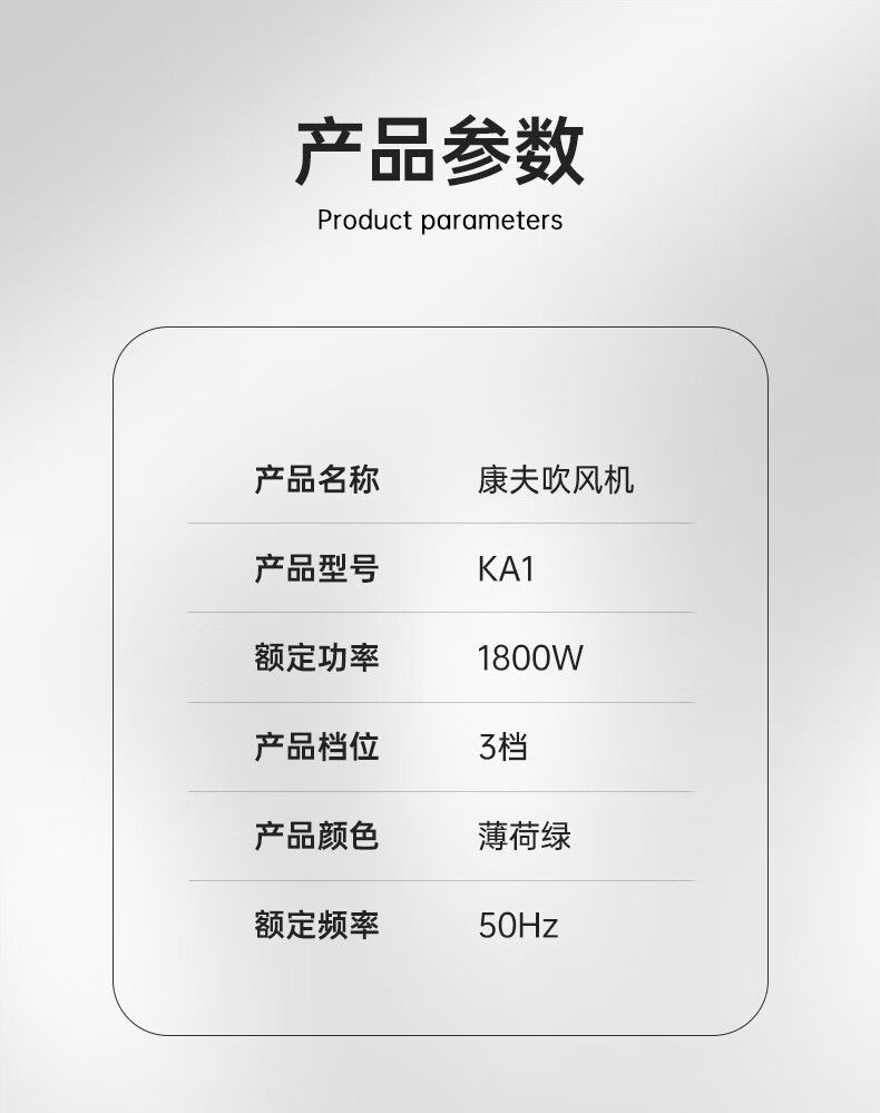 商品名称:康夫(CONFU)电吹风机家用1800W便携造型吹风机节日礼物KA1