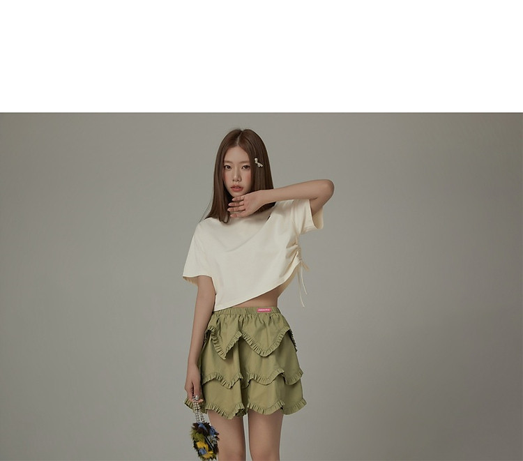 【多巴胺系列】抽褶低圆领遮肉小衫夏季纯色简约女式衬衫 034653