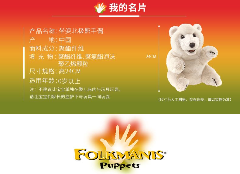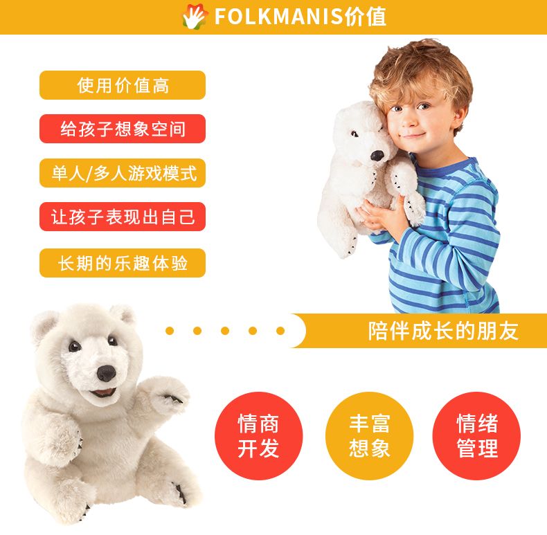 商品名称:福克曼尼斯/FOLKMANIS 仿真互动教育坐姿北极熊手偶