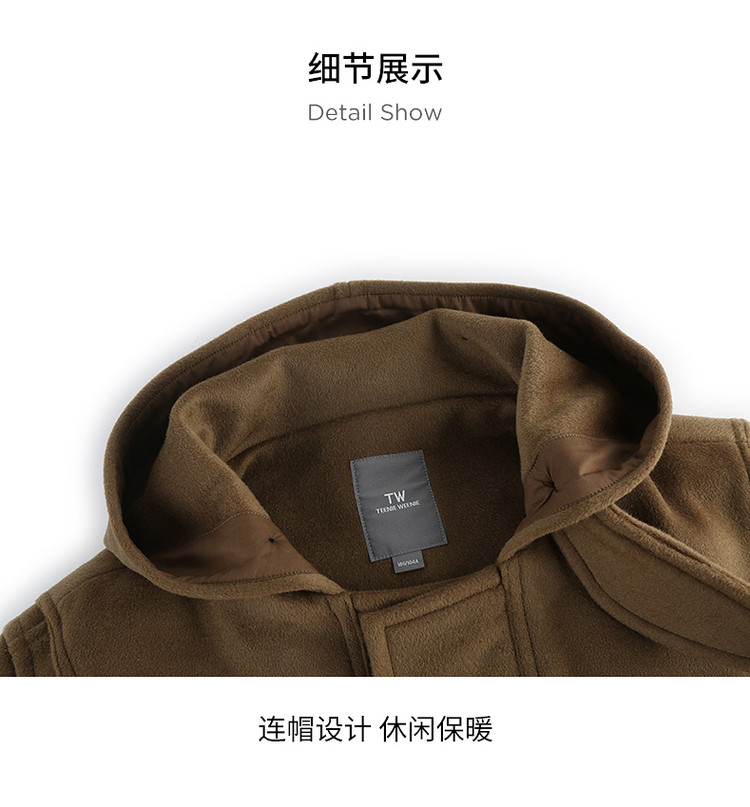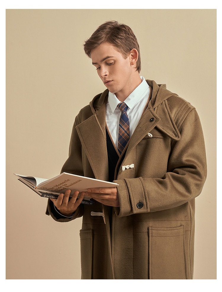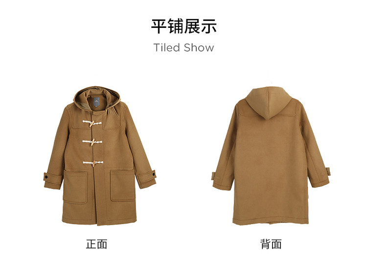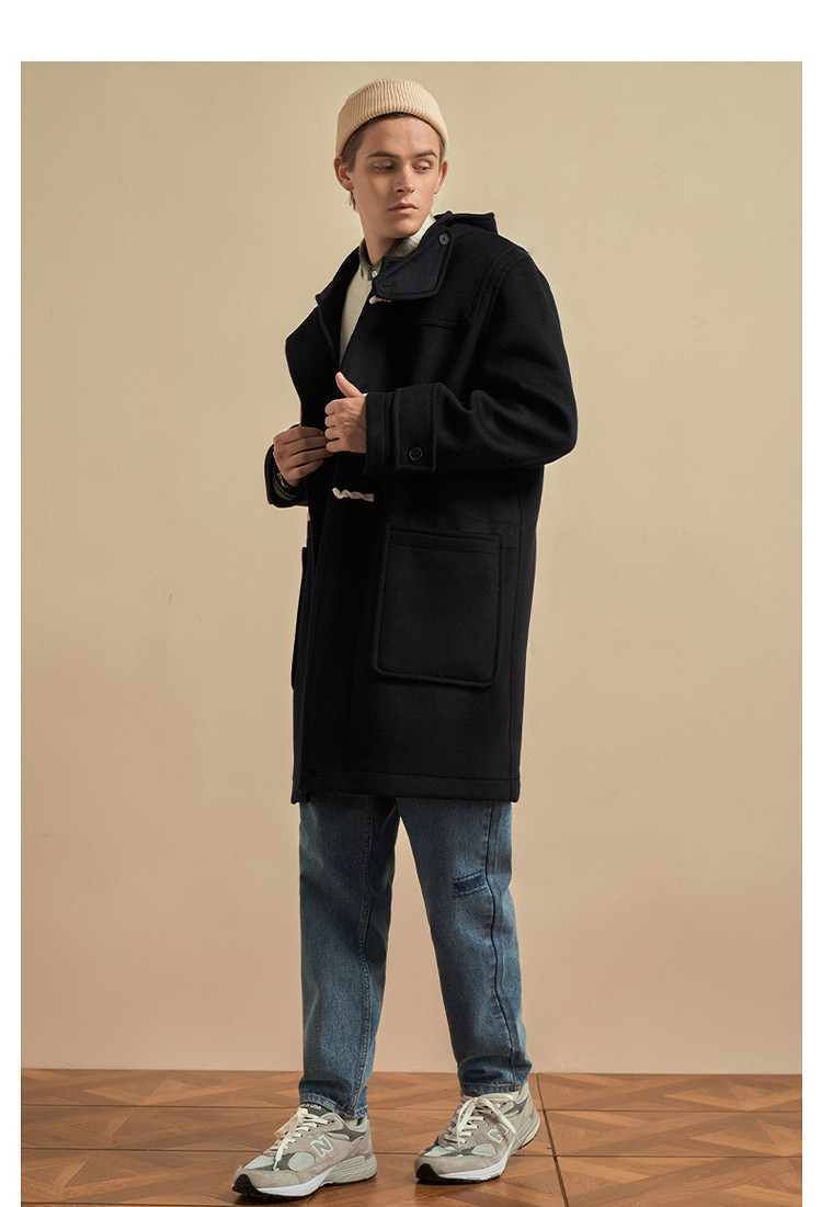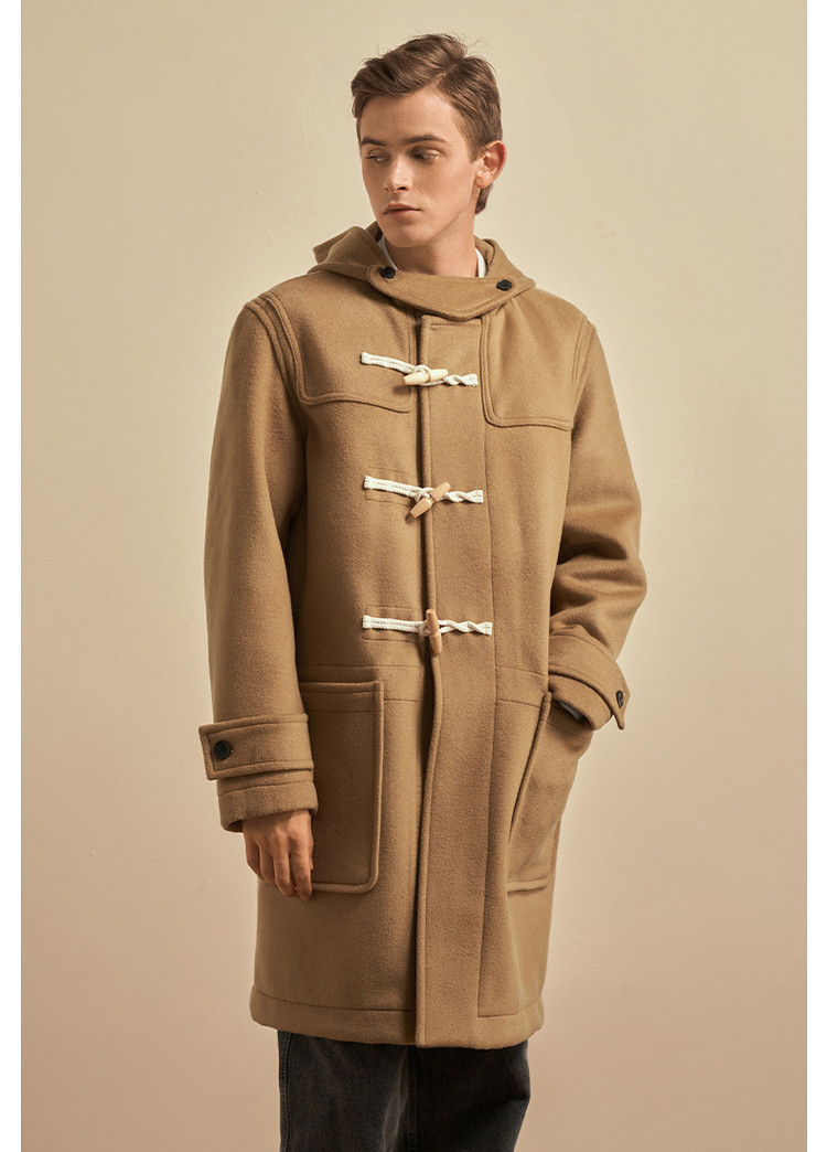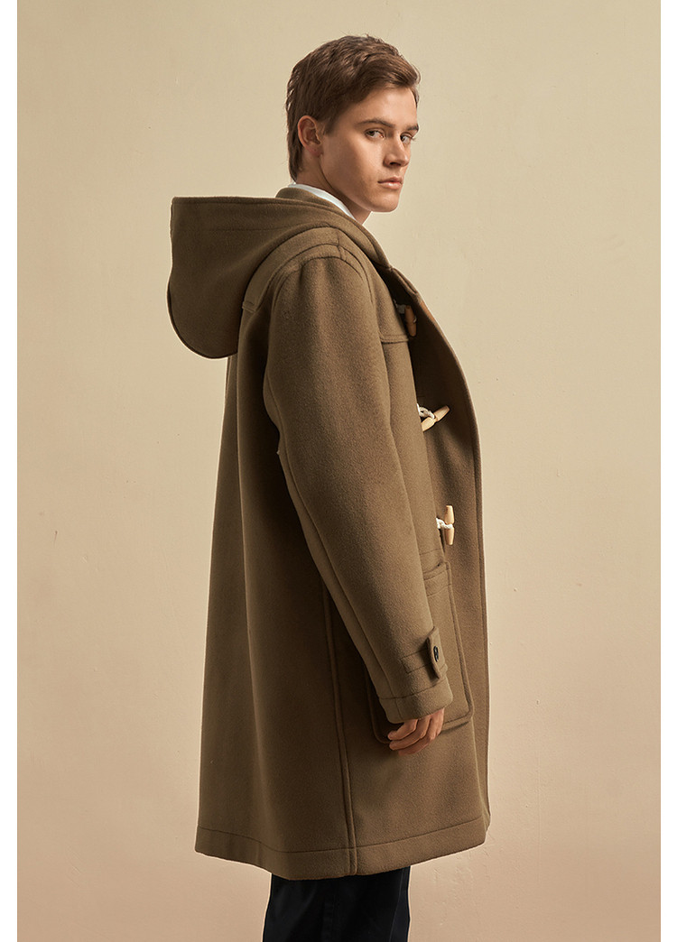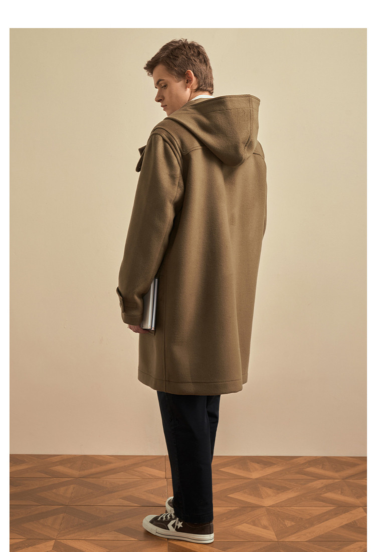 商品名称:小熊男装秋季学院牛角扣连帽毛呢外套男大衣男 202113