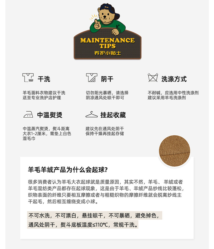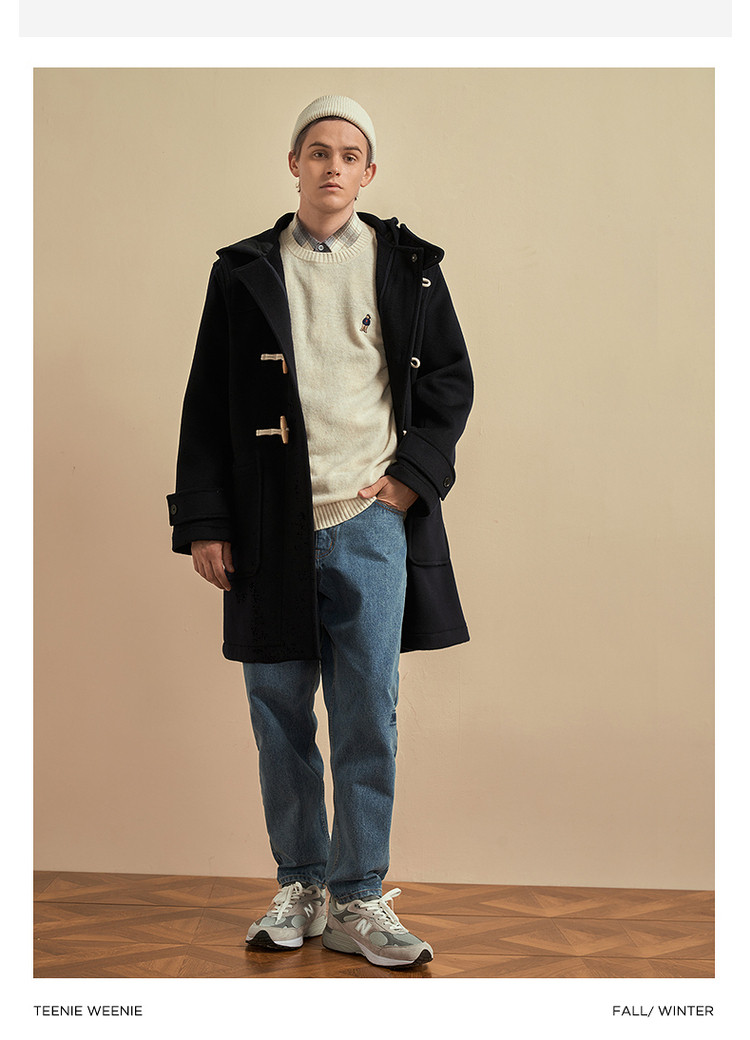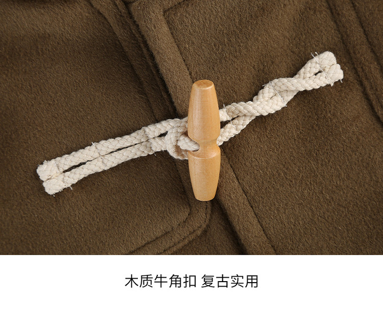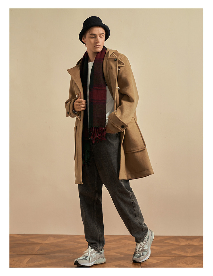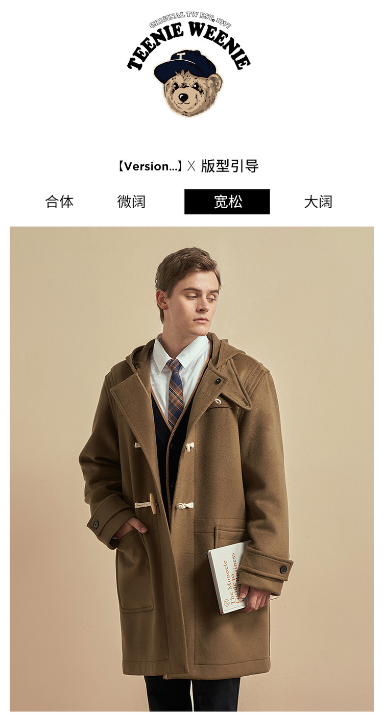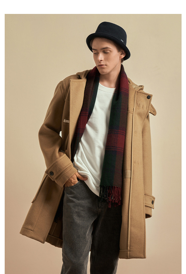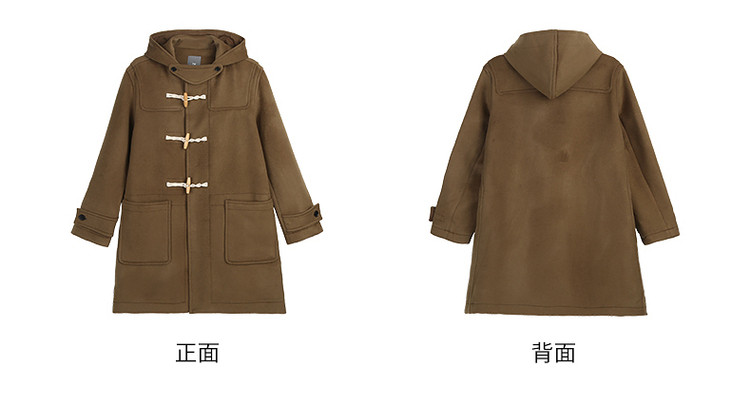 商品名称:小熊男装秋季学院牛角扣连帽毛呢外套男大衣男 202113
