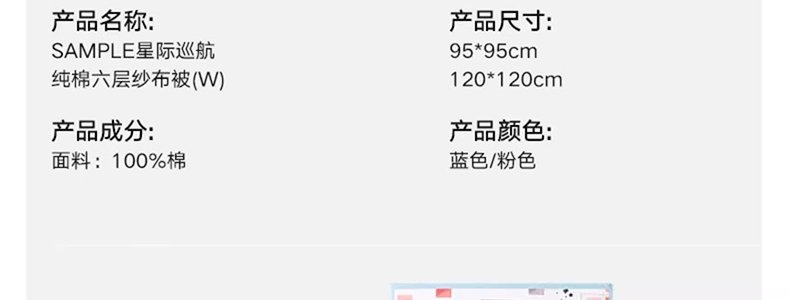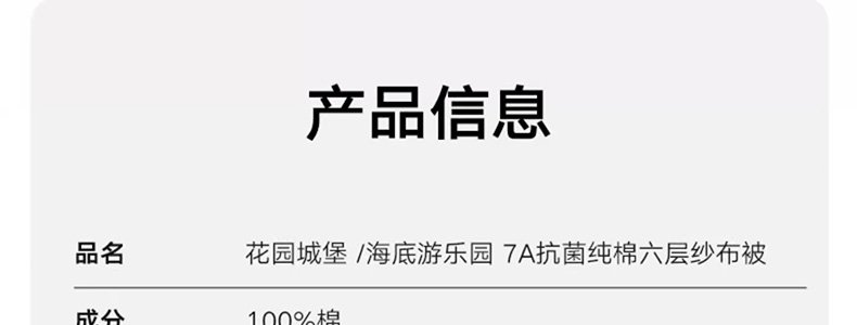 商品名称:好孩子 花园城堡7A抗菌纯棉六层纱布被 粉