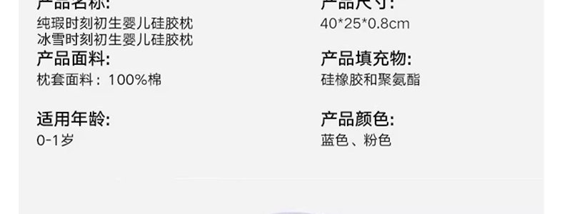 商品名称:好孩子 纯瑕时刻初生婴儿硅胶枕 粉 40*25