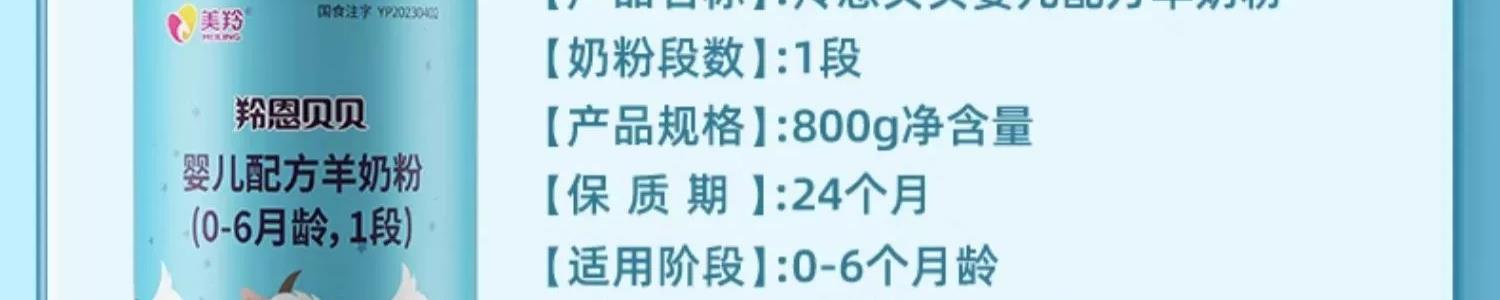 商品名称:美羚 羚恩贝贝婴幼儿配方羊奶粉1段(0-6月) 800g