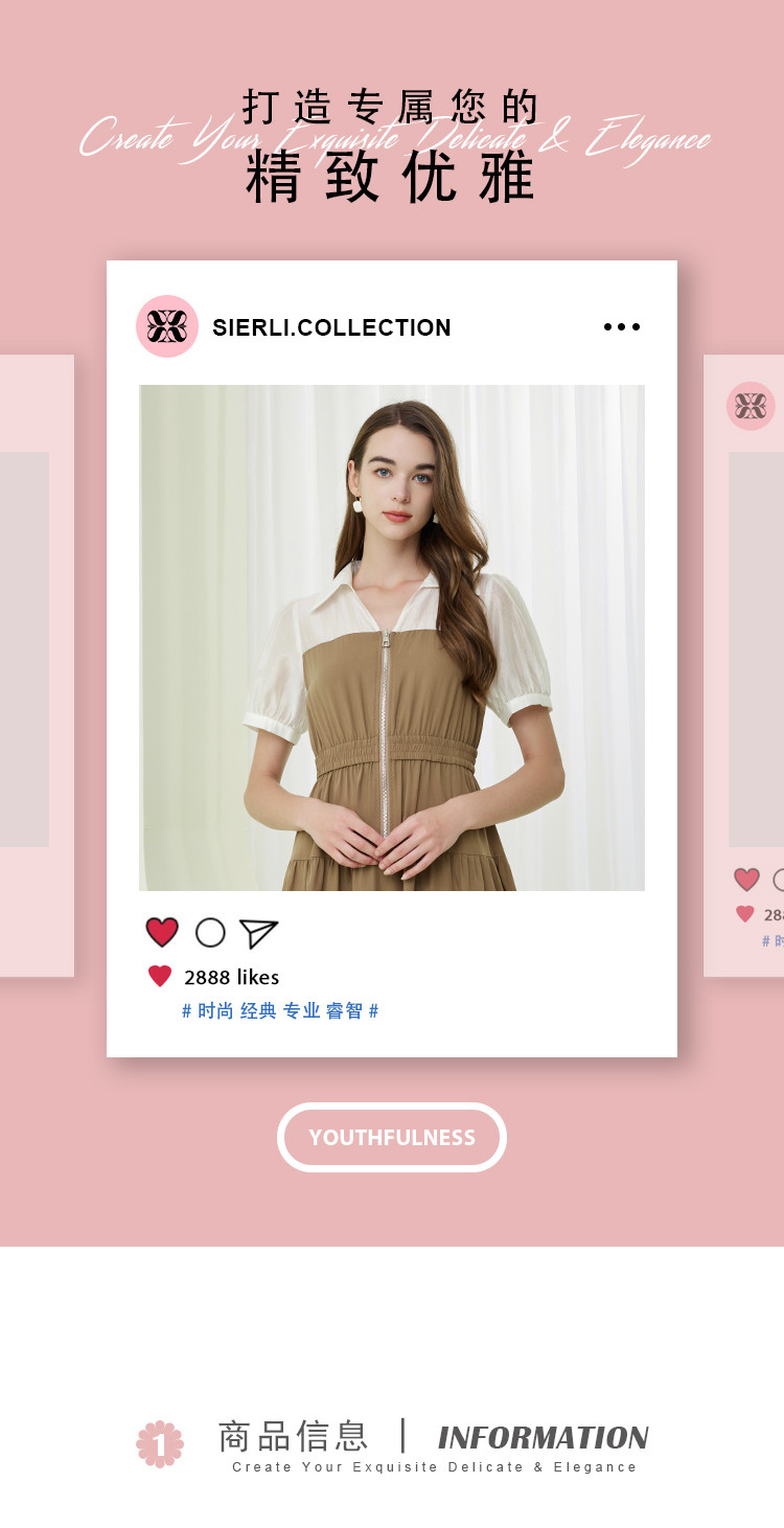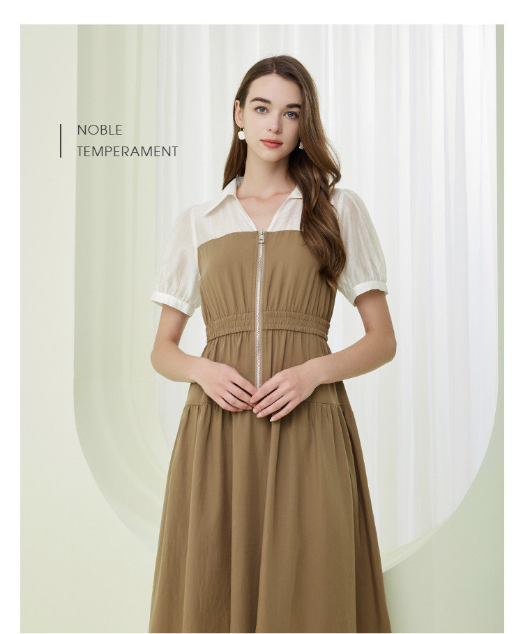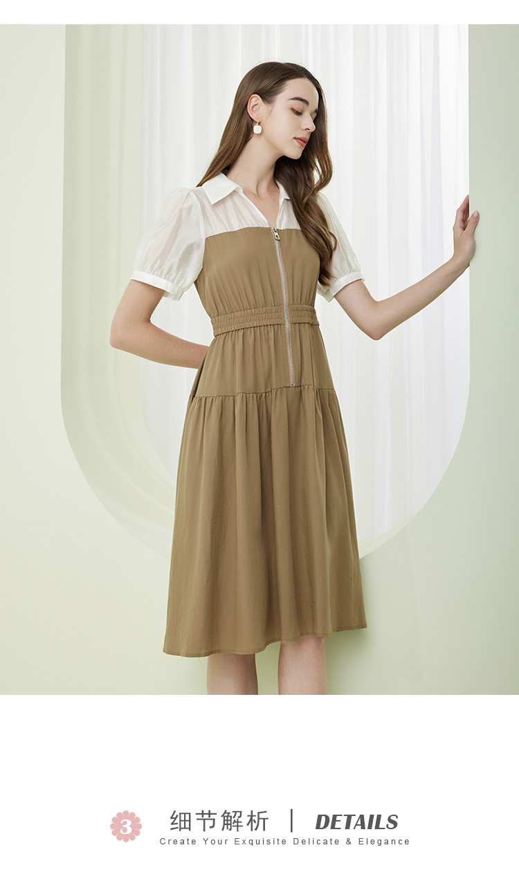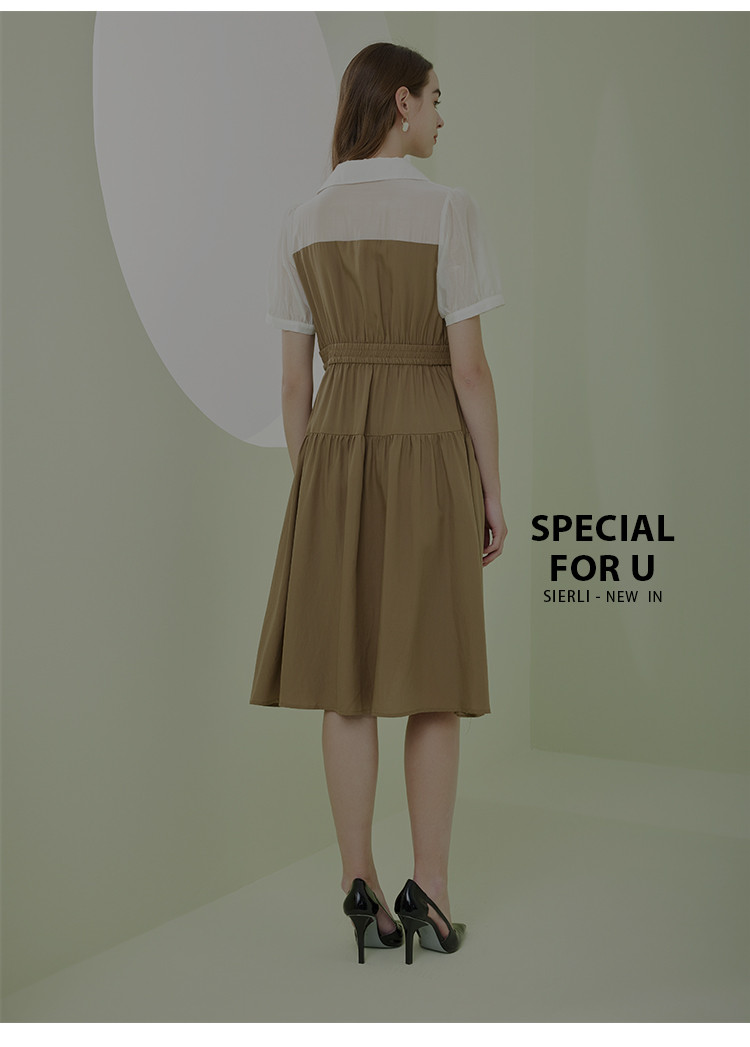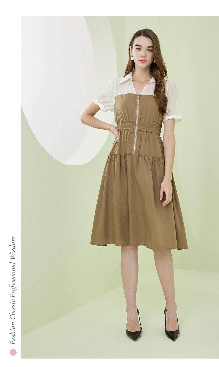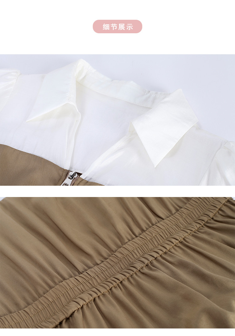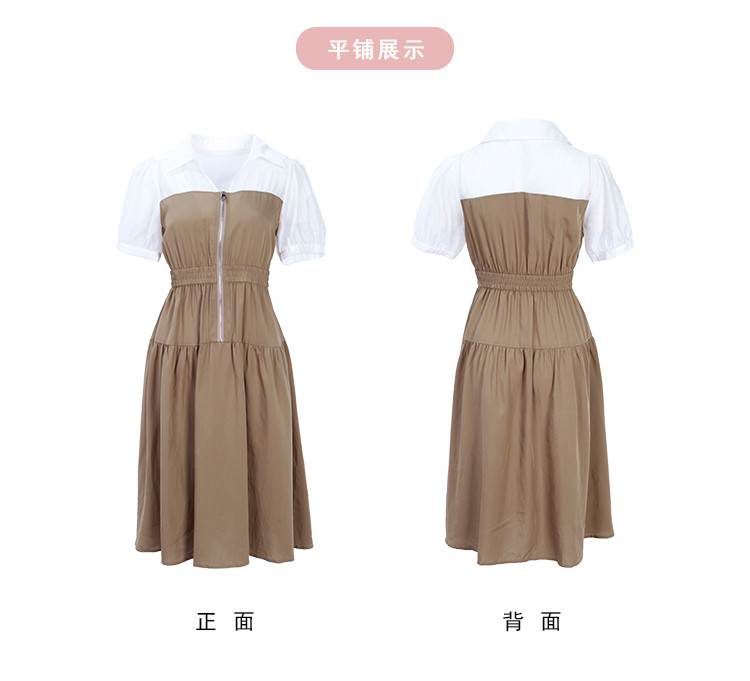 商品名称:夏季优雅休闲小方领收腰显瘦A摆衬衫式时尚拼接连衣裙 388447