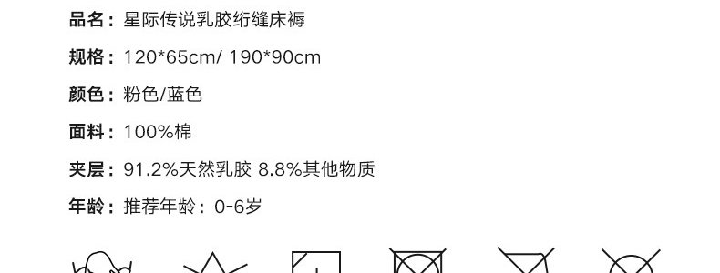 商品名称:好孩子 星际传说乳胶绗缝保护垫 粉190*90