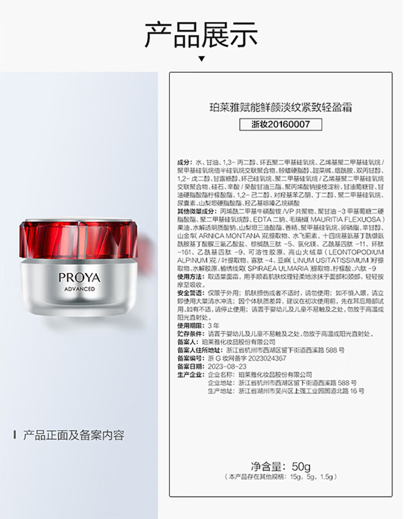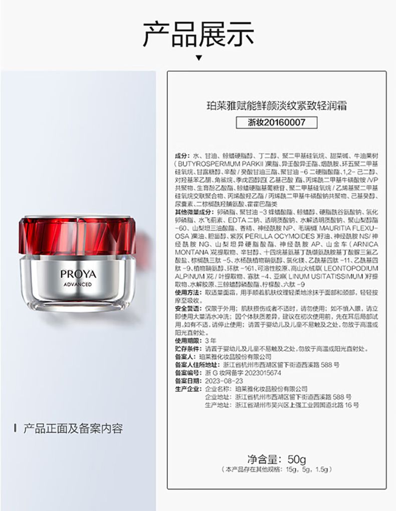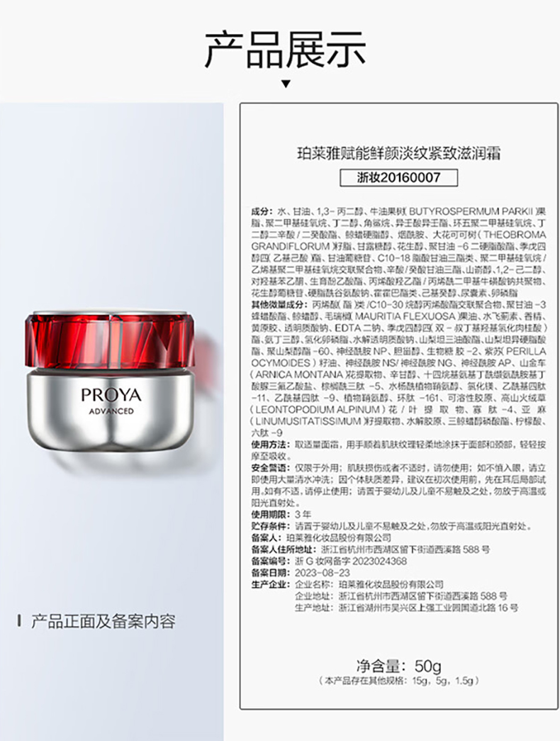 商品名称:PROYA/珀莱雅赋能鲜颜淡纹紧致面霜