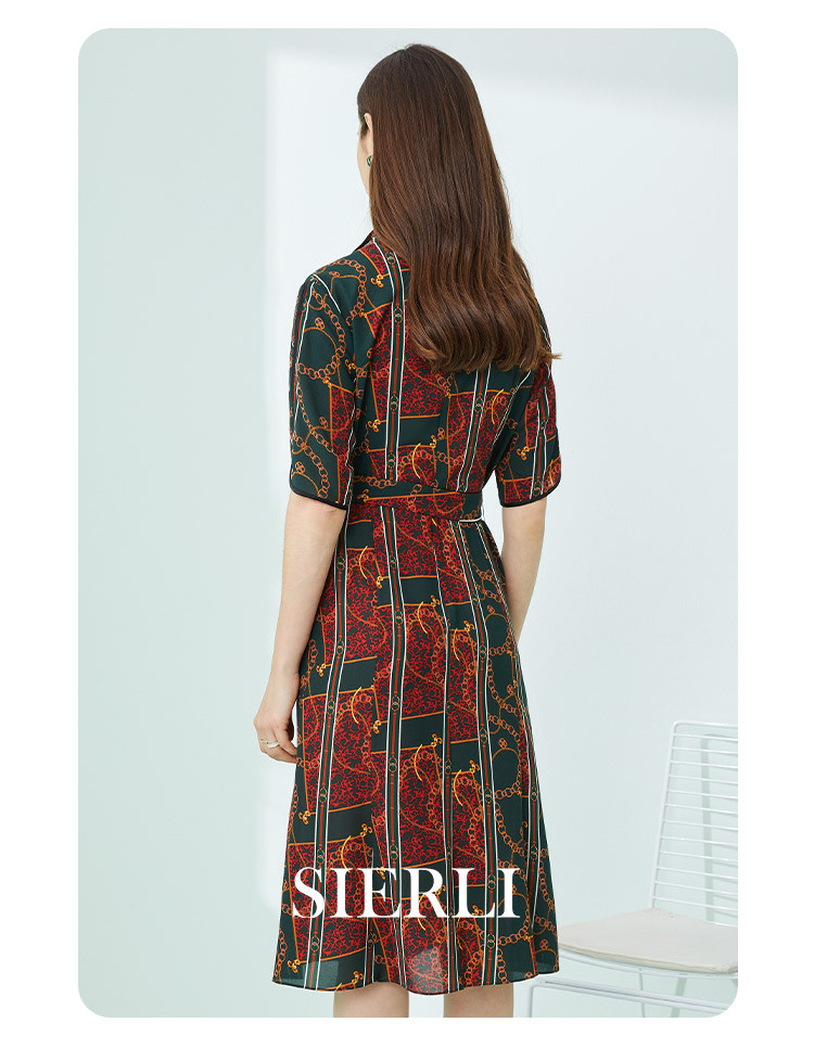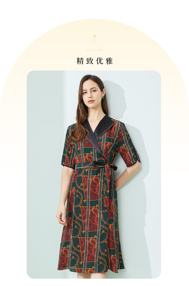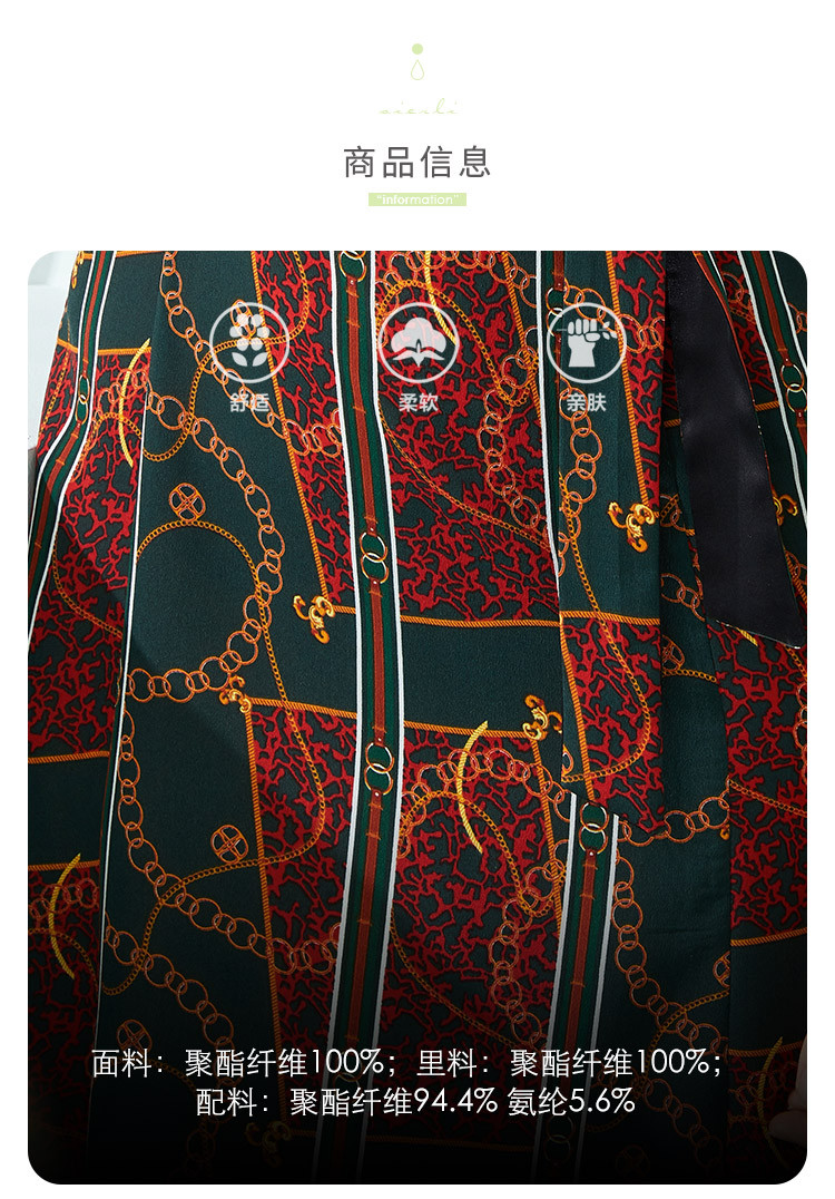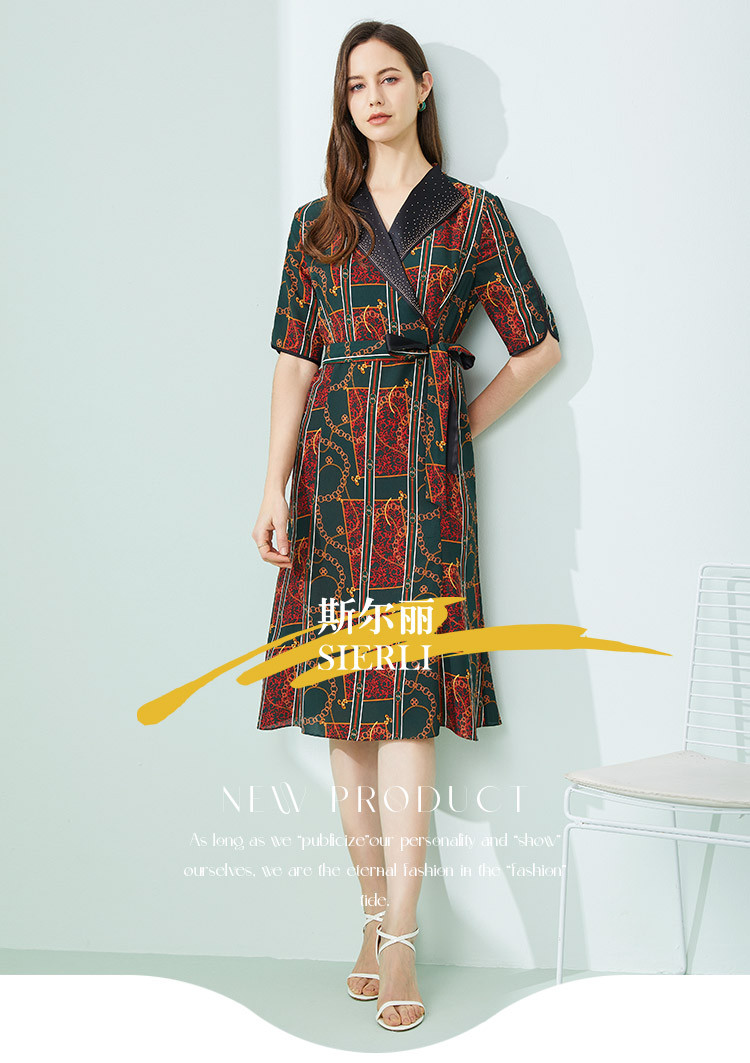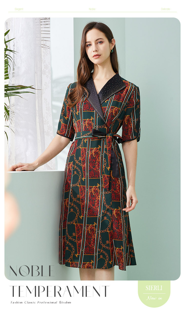 商品名称:商场同款秋季复古巴洛克金链油画印花撞色烫钻西装领优雅连衣裙 151135