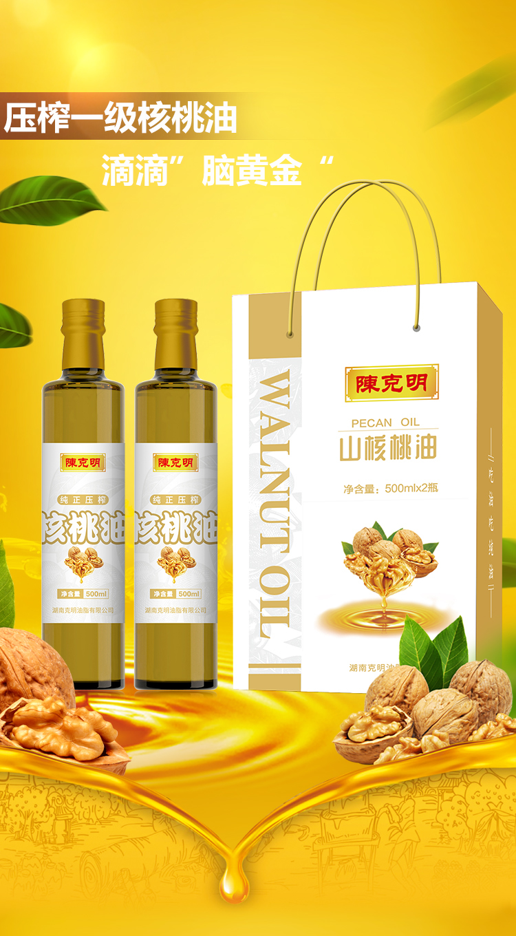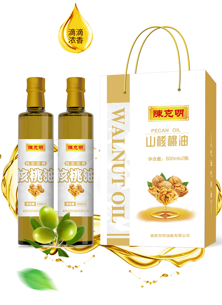 商品名称:陈克明压榨一级核桃油礼盒500ml*2瓶