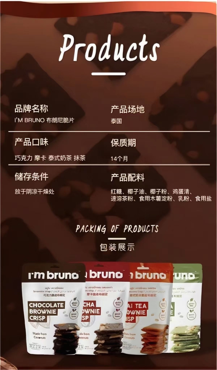 商品名称:BRUNO泰国进口布朗尼脆片60g*3包