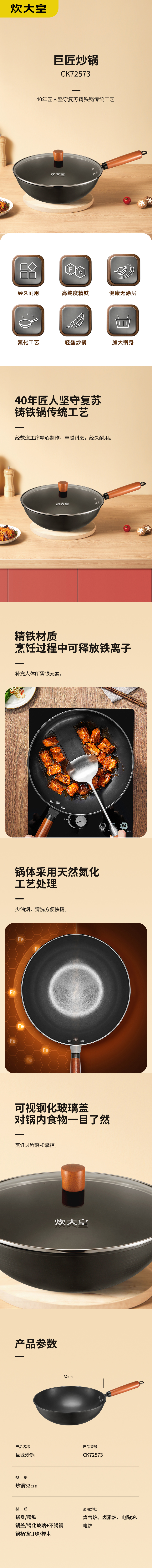 商品名称:COOKERKING/炊大皇32cm巨匠炒锅带盖CK72573