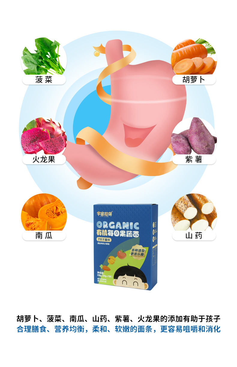 商品名称:宇宙超萌儿童辅食有机每日果蔬面210g