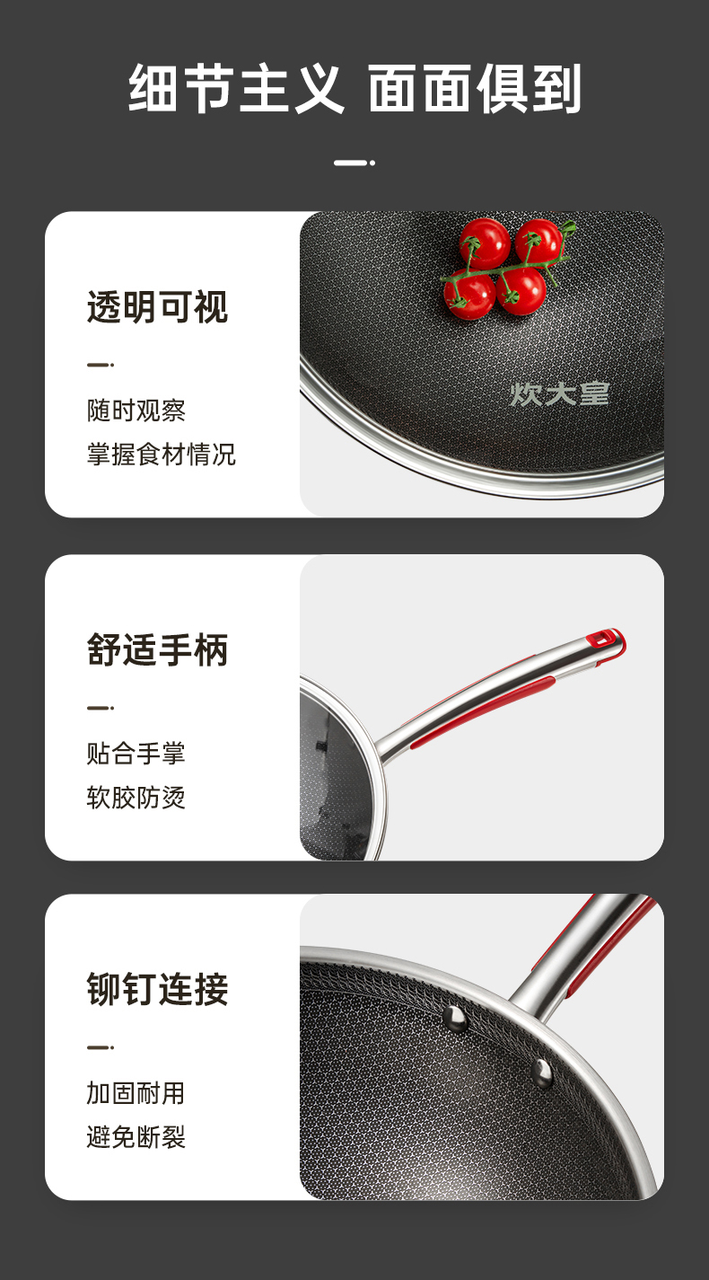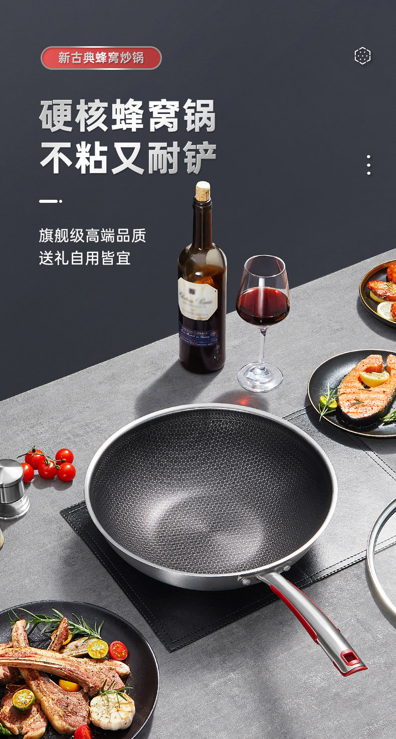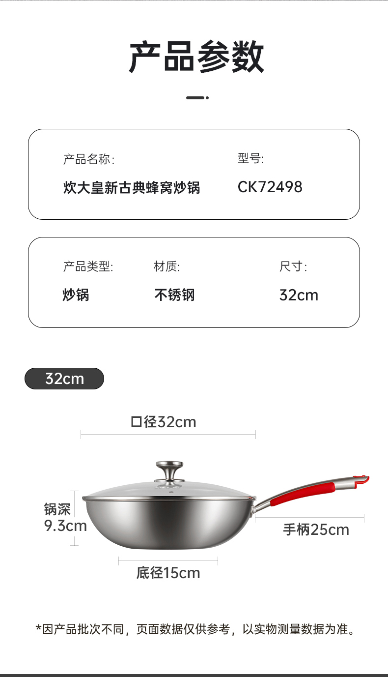 商品名称:COOKERKING/炊大皇32cm新古典蜂窝炒锅带盖CK72498