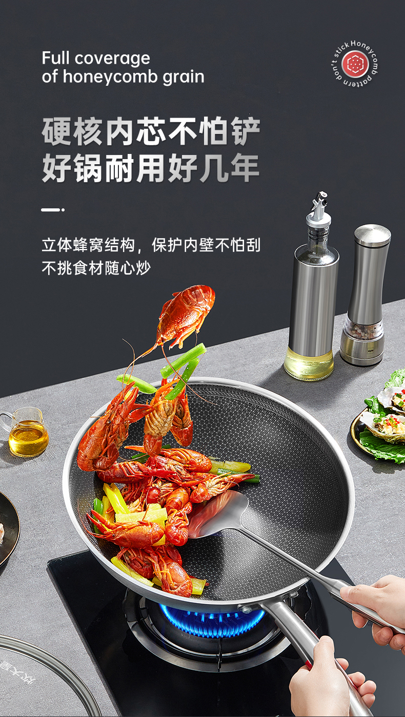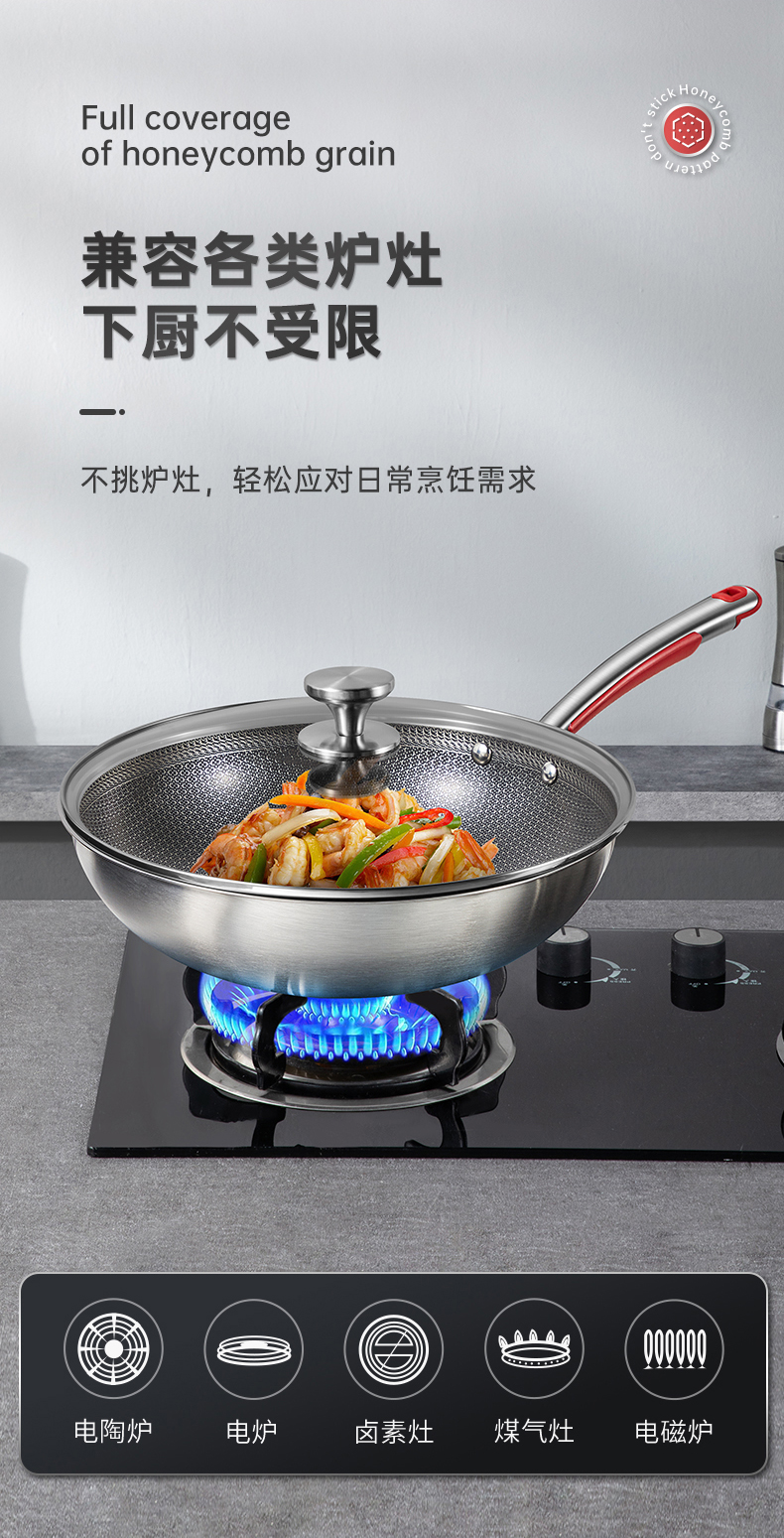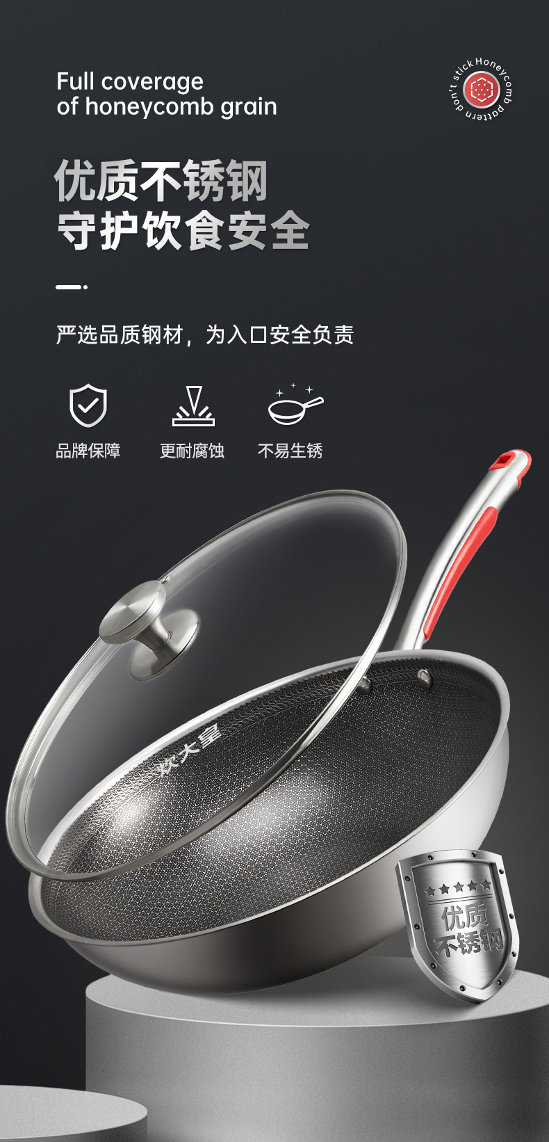 商品名称:COOKERKING/炊大皇32cm新古典蜂窝炒锅带盖CK72498