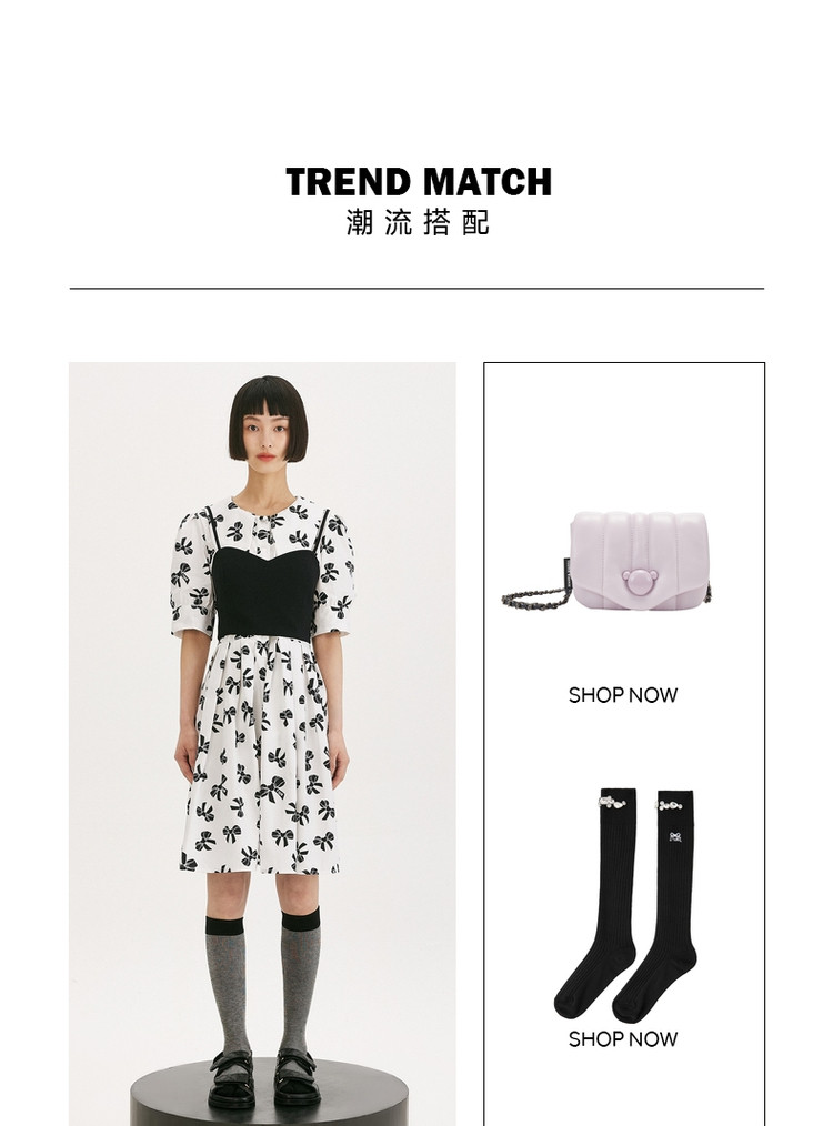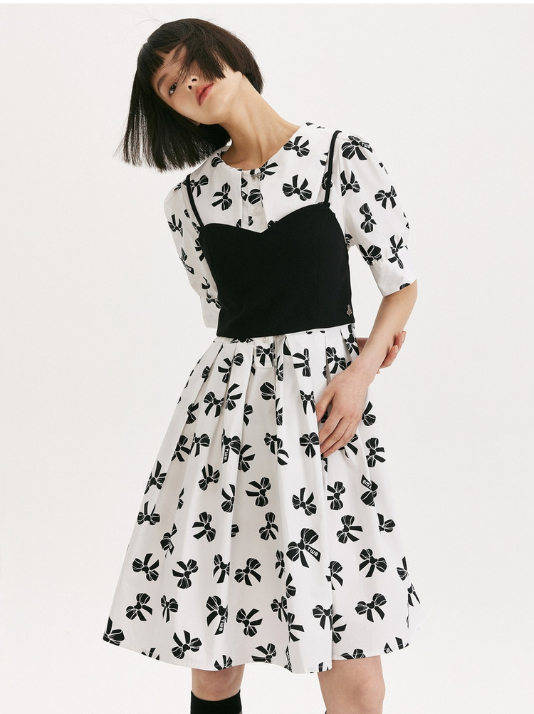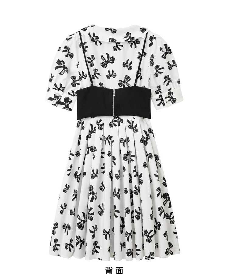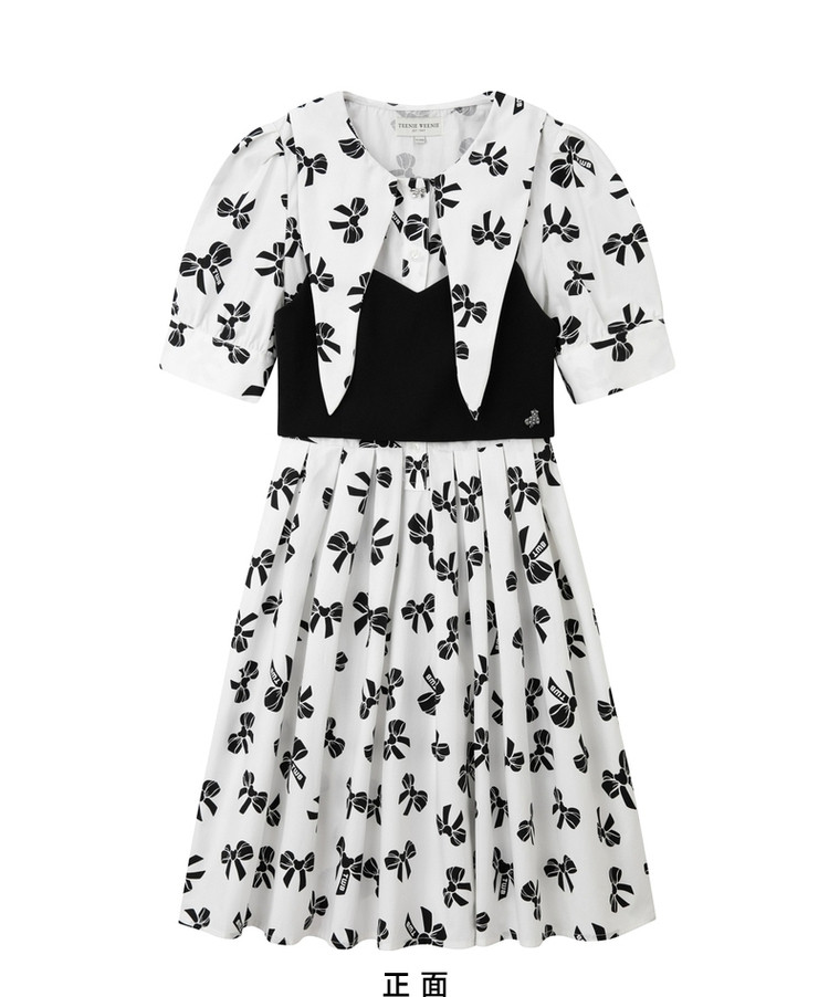 商品名称:小熊夏设计感收腰复古时髦两件套连衣裙 822401