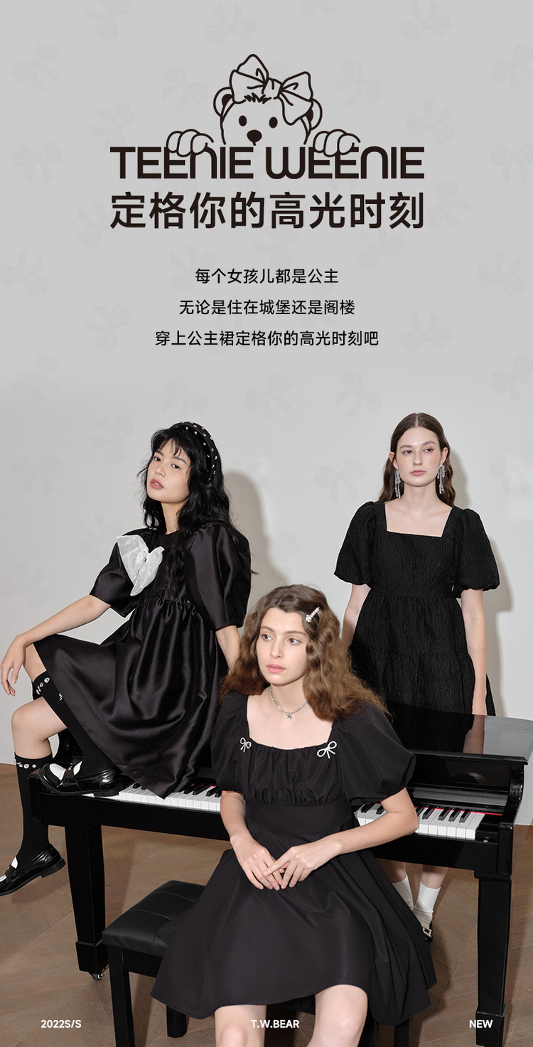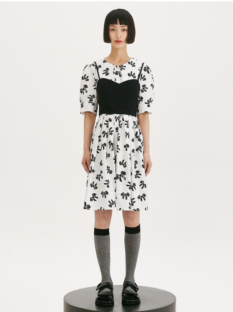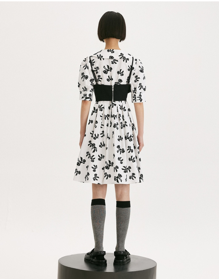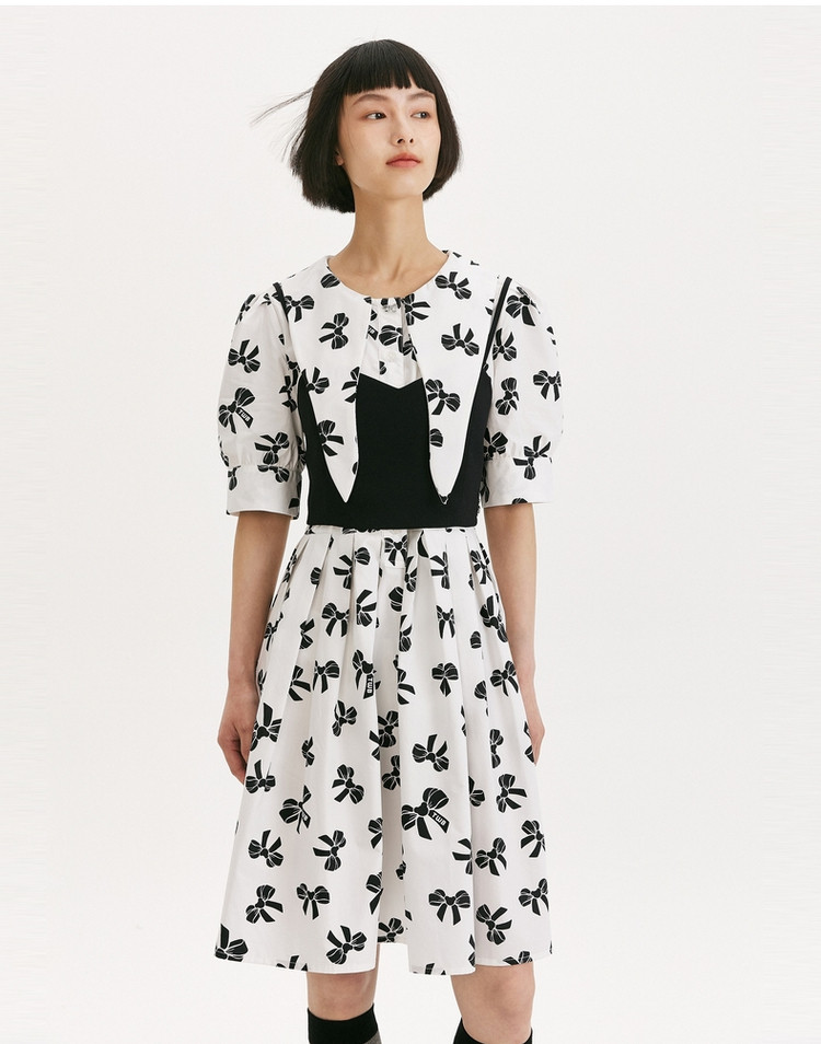 小熊夏设计感收腰复古时髦两件套连衣裙 822401