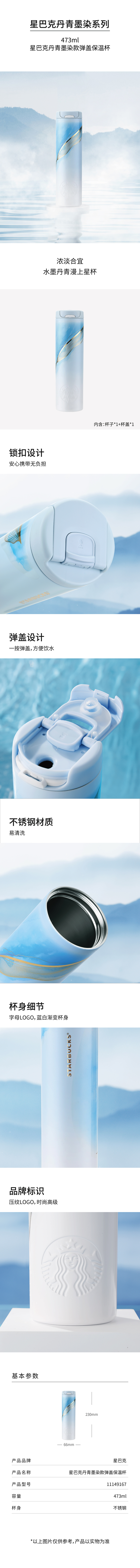 商品名称:STARBUCKS/星巴克473毫升弹盖保温杯-丹青墨染11149167