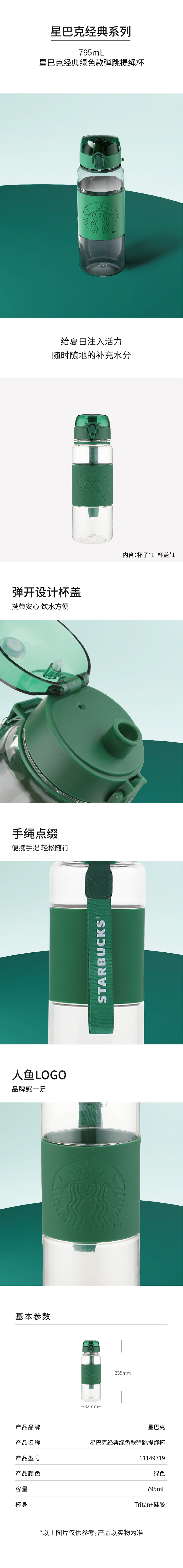 商品名称:STARBUCKS/星巴克795毫升经典绿色款弹跳提绳杯-11149719